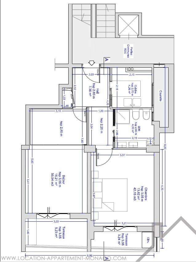 Le Shakespeare, agréable 2p 56 m2 habitables + 8 m2 balcons, entièrement rénové, climatisé, vue mer.