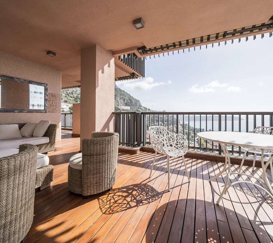 La Rousse, Saint Roman, in a residence of high standing with concierge H24 and swimming pool, very beautiful 5 room-flat with a living area of about 228 sqm and 48 sqm of terraces. Located on the 15th floor and exposed east, it enjoys panoramic sea views overlooking the Country Club and Monte Carlo Beach. It has been renovated with beautiful materials and decorated in a design way. Close to all amenities.