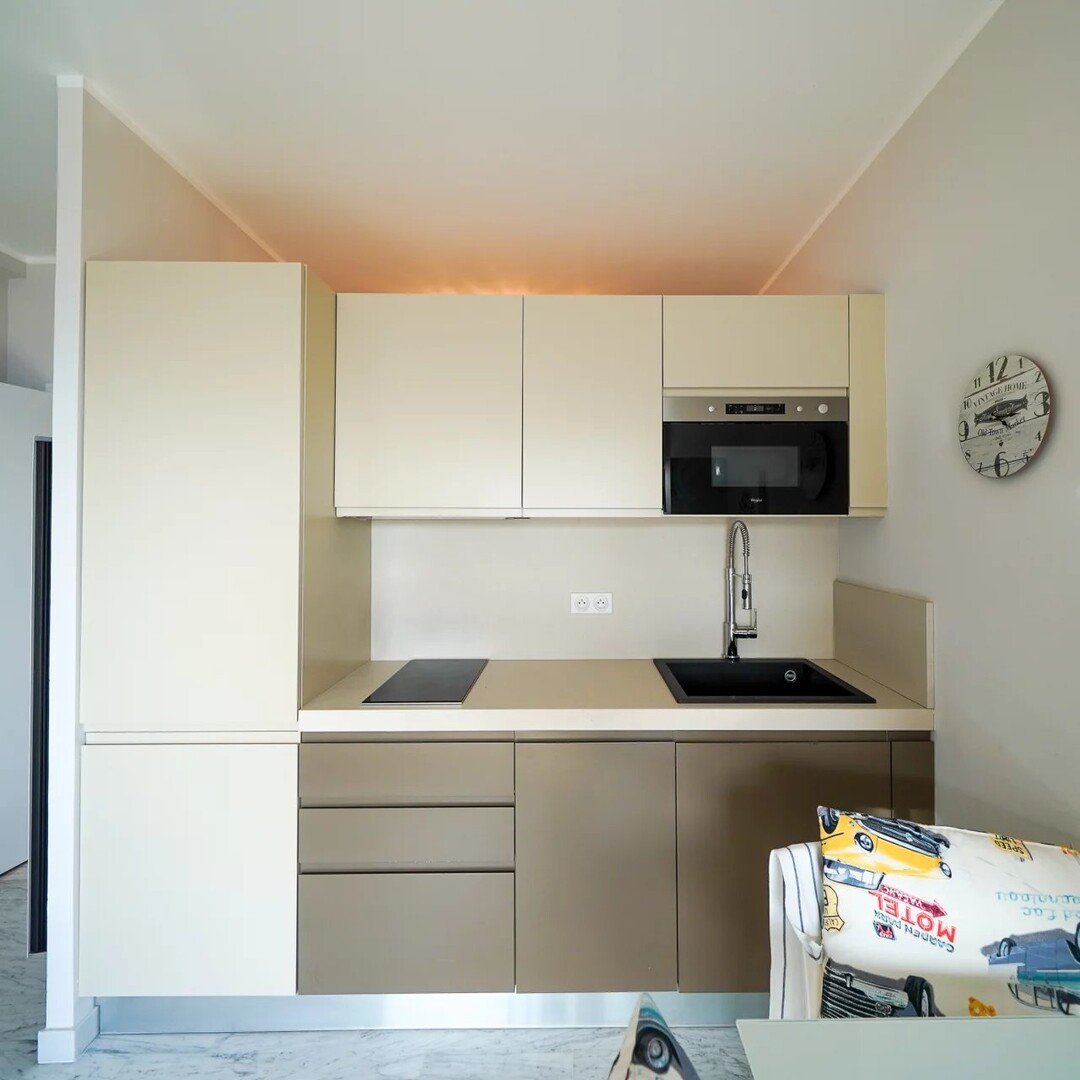 With a living area of 32 m² and 10 m² of terrace. Located on a high floor, this nice studio has been completely renovated. It is facing south and enjoys a beautiful sea view.