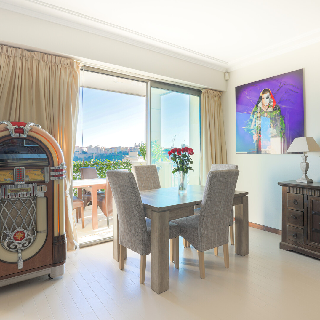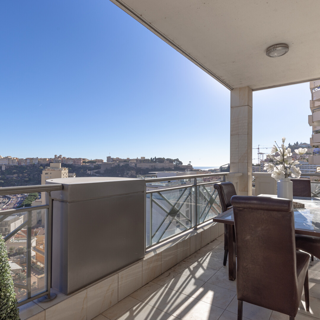 The apartment overlooks the port of Monaco and offers a nice view of the sea and the Prince's Palace.