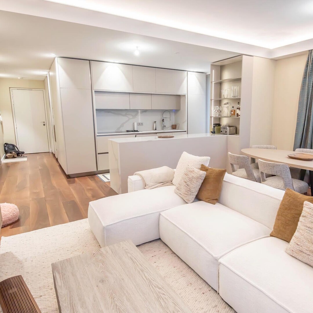 It offers a spacious living room extending naturally onto the terrace, an equipped kitchen, two bedrooms with dressing room and en-suite bathrooms, guest toilet and laundry room.