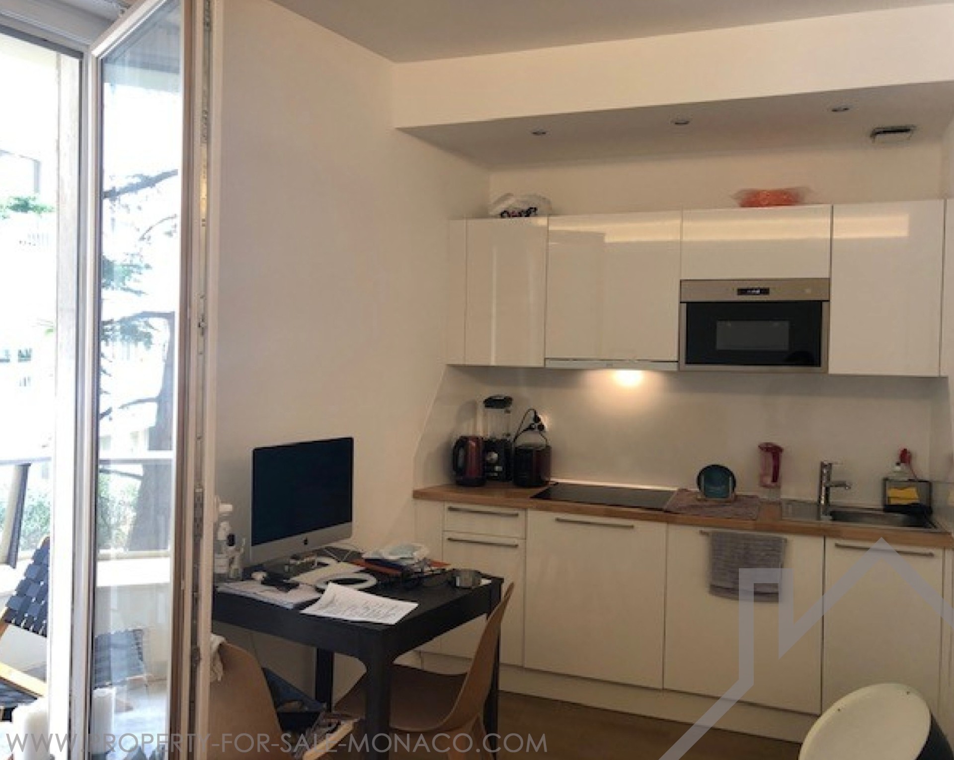 - an equipped kitchen open on a room
