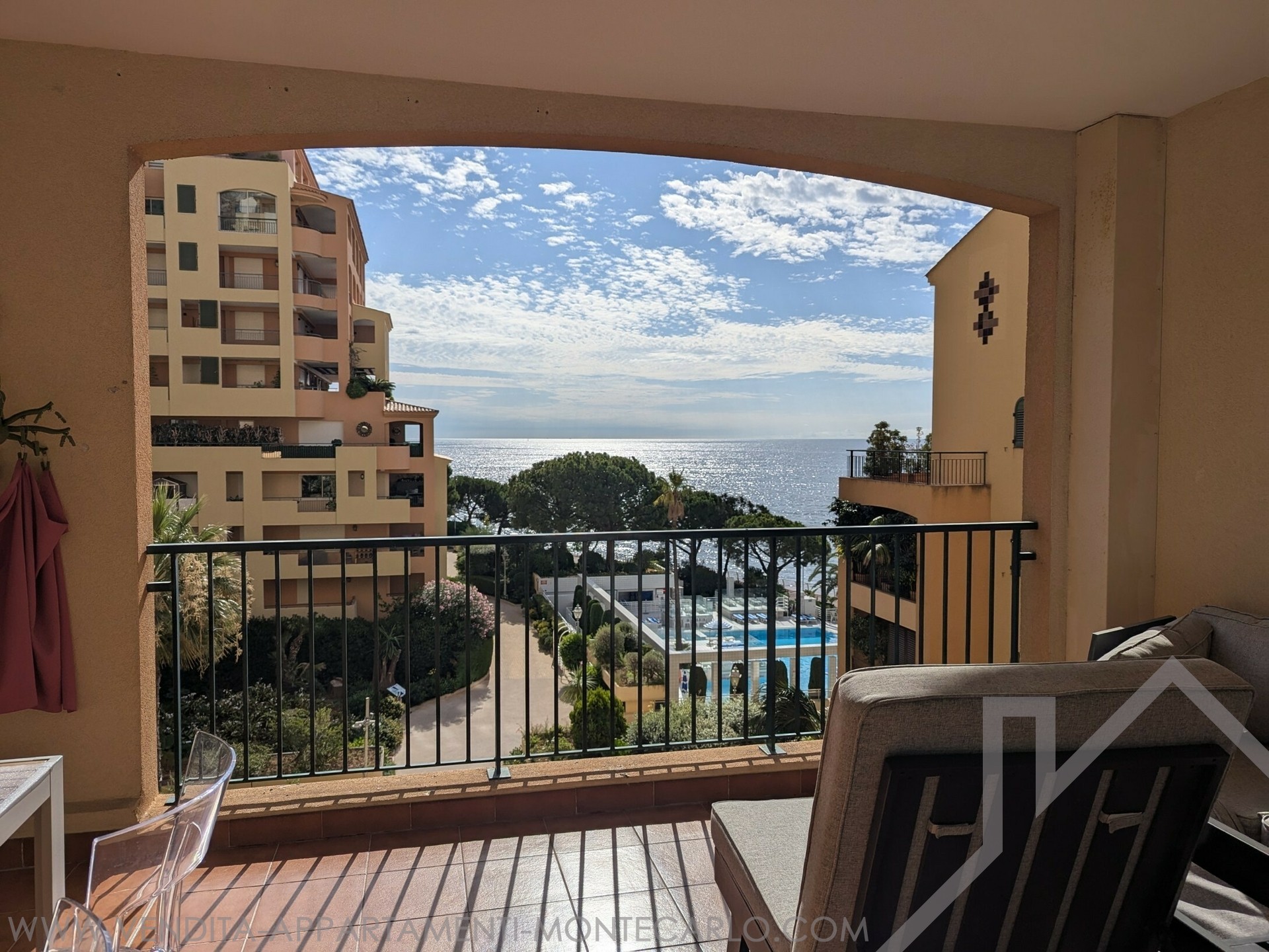 Charming 2-room apartment with sea view located in Fontvieille in a good standing building with swimming pool