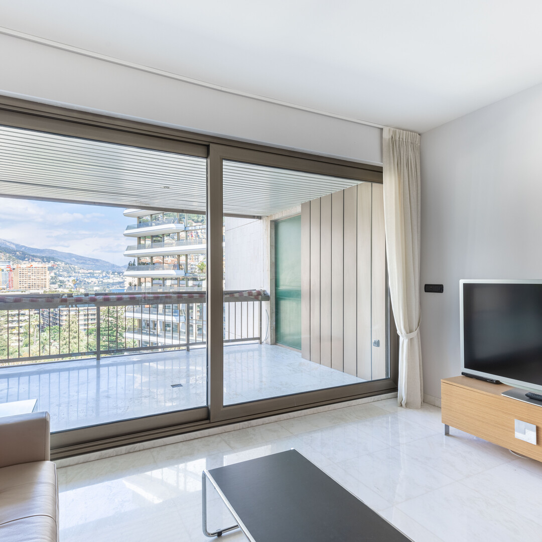 Superb three-room apartment located in the prestigious building "Le Park Palace", in the heart of the Carré d'Or. Located just a few minutes walk from the Place du Casino and its luxury shops, restaurants and hotels.