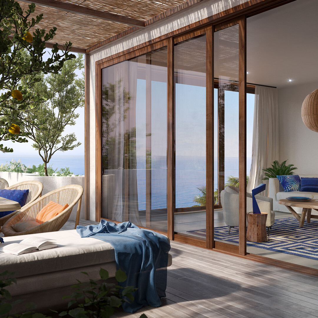 - A large terrace with sea views