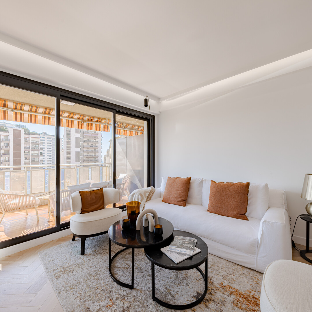 Located in a luxury building, a few steps from the Carré d'Or and the Place du Casino, this apartment has been completely renovated with high-end materials and combines comfort and refinement.