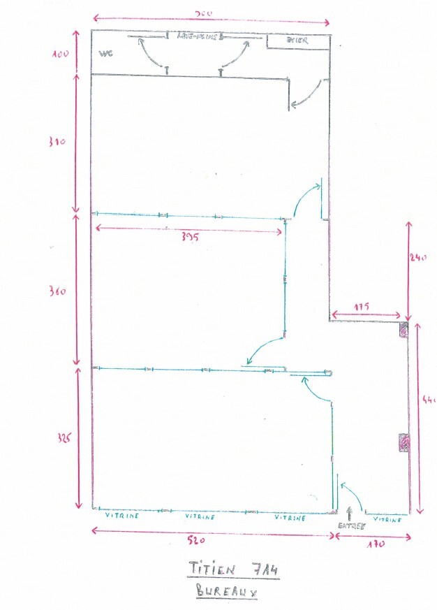 With a surface area of 62 sqm this office in excellent condition consists of a main room divided into three offices partitioned by windows, a kitchenette, a toilet and a large showcase.