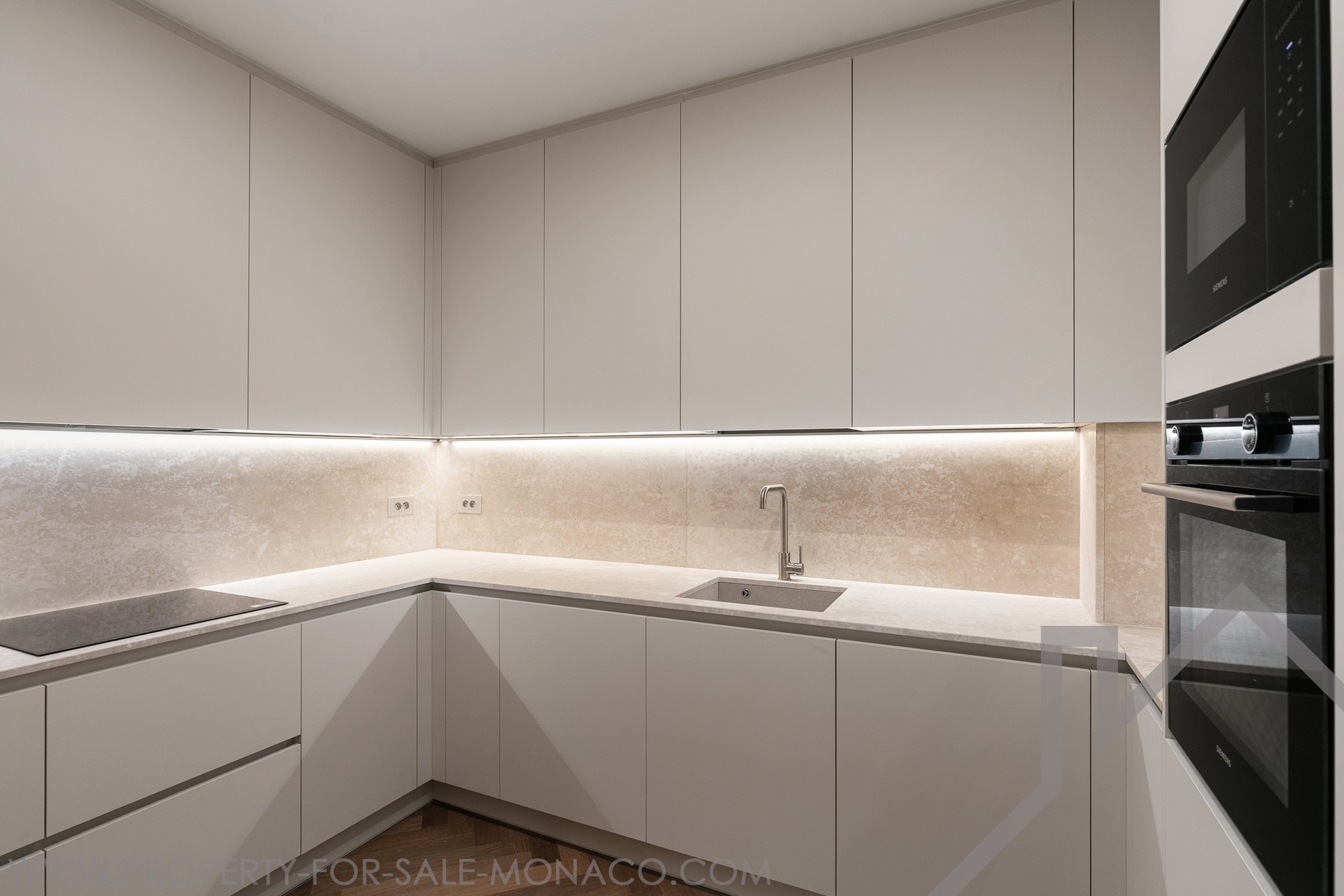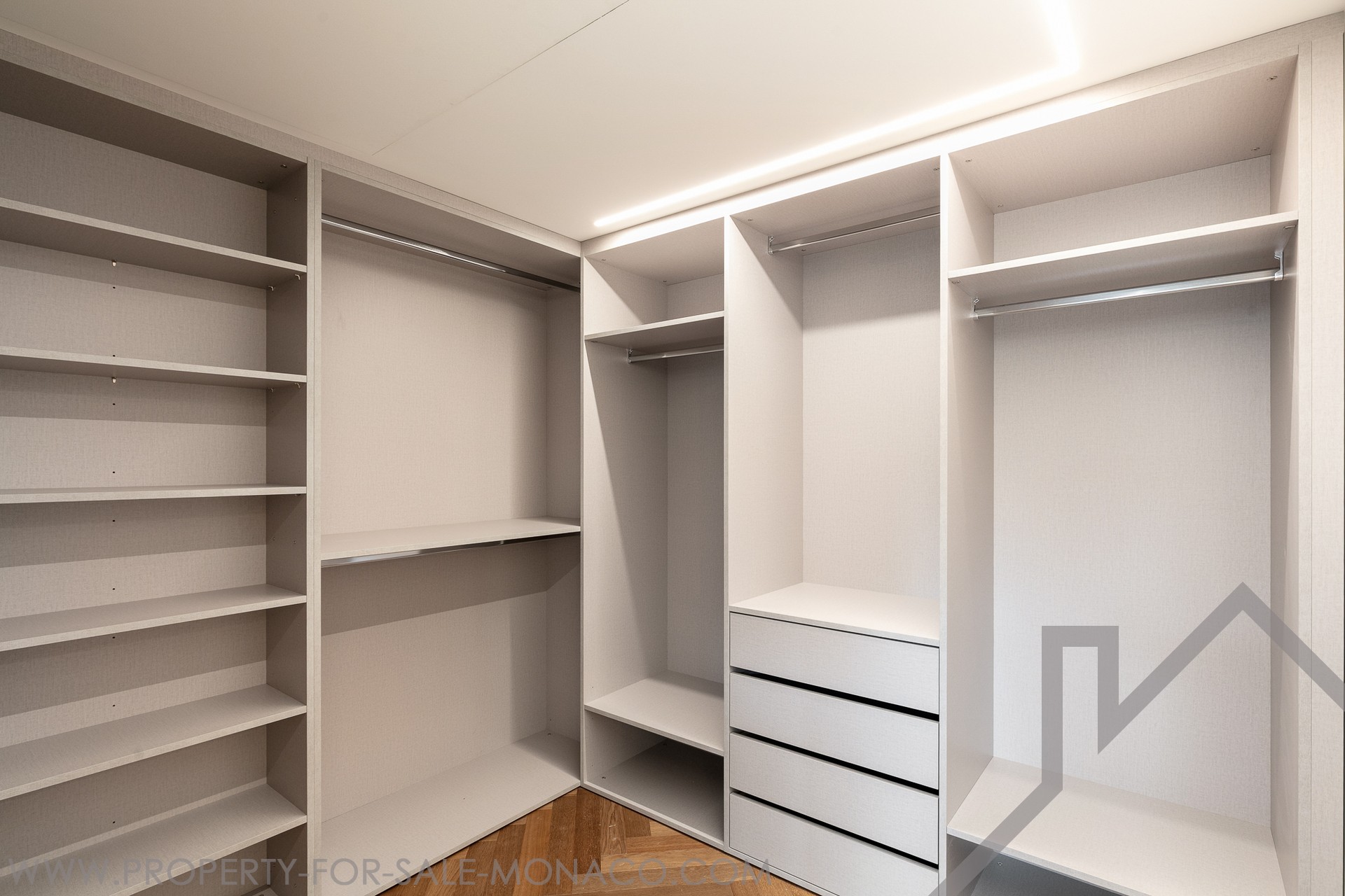 Composition: a welcoming entrance hall, a spacious living room perfect for entertaining or relaxing, a modern, fully equipped separate kitchen with adjoining laundry room, two en-suite bedrooms, each with built-in storage and dressing room, a guest toilet, and a pleasant balcony with unobstructed views of the city, ideal for enjoying the Monegasque atmosphere.