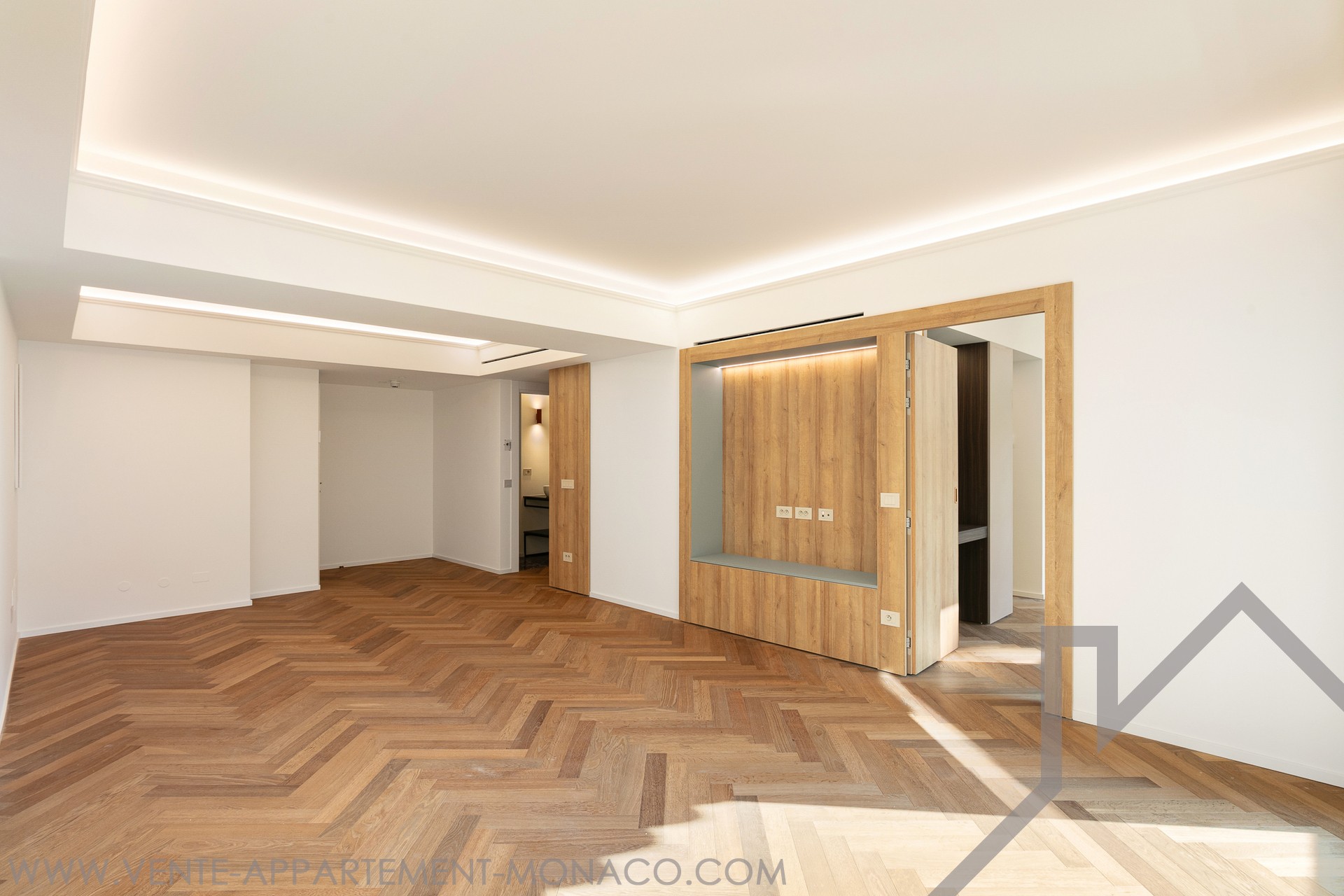 Composition: a welcoming entrance hall, a spacious living room perfect for entertaining or relaxing, a modern, fully equipped separate kitchen with adjoining laundry room, two en-suite bedrooms, each with built-in storage and dressing room, a guest toilet, and a pleasant balcony with unobstructed views of the city, ideal for enjoying the Monegasque atmosphere.