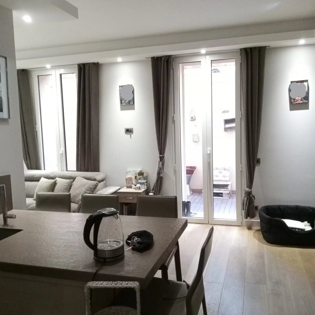 Appartement complètement renouvelé situé prêt du marché de la Condamine dans un immeuble bourgeois. Il se compose de: entré, cuisine complètement équipée donnant sur le séjours, 3 chambres dont 2 avec salle de bains en-suite, toilette invité avec douche. L'appartement bénéficie d'une terrasse de 35m² ou il se trouve un local buanderie.Charges faibles.