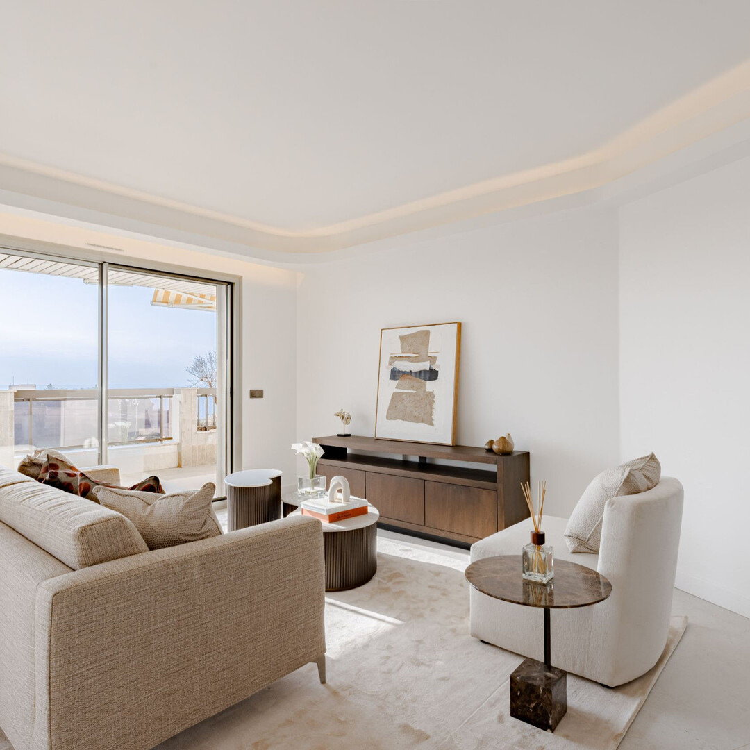 This beautiful 2 bedroom apartment located on Boulevard de Belgique in the Beverly Palace residence has been completely renovated with high-end materials. This apartment includes two bedrooms with its own bathroom, a living room with dining room, a fully equipped independent kitchen and a guest toilet. A large terrace offering a magnificent view of the Port Hercule and the Rocher illuminates the apartment. 1 parking and one cellar