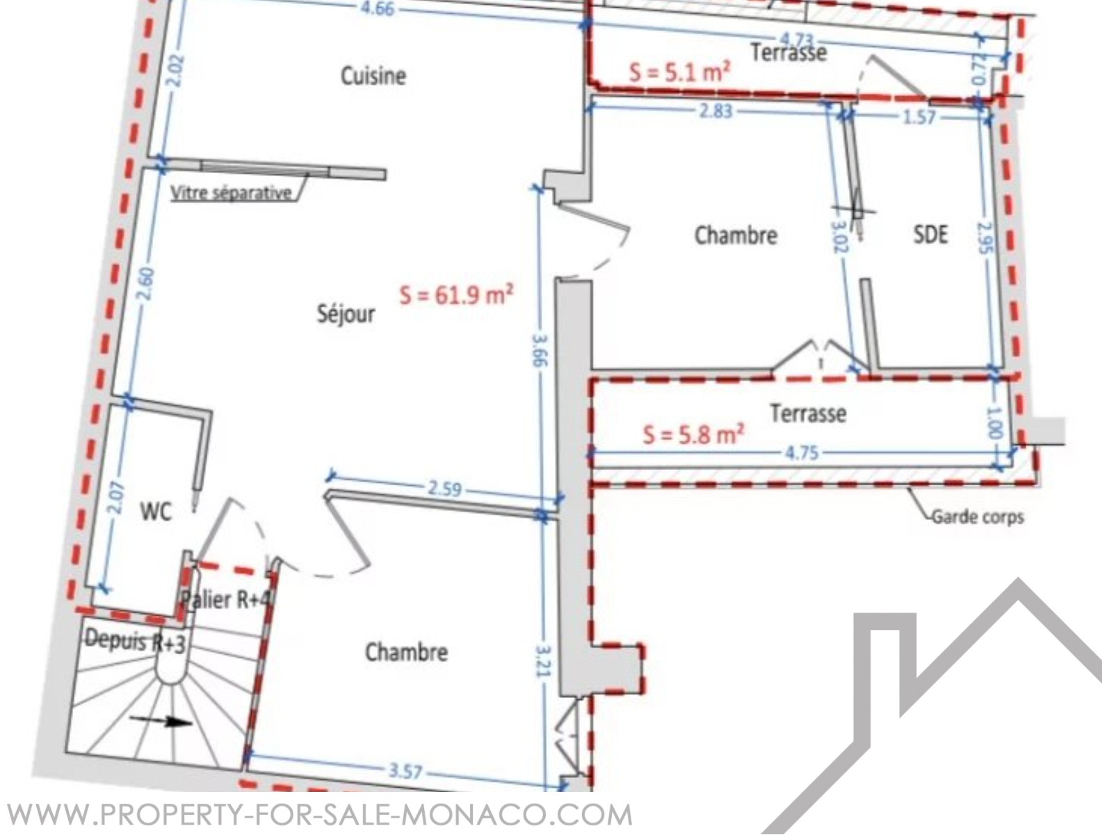 3 Room Apartment in Monaco Ville