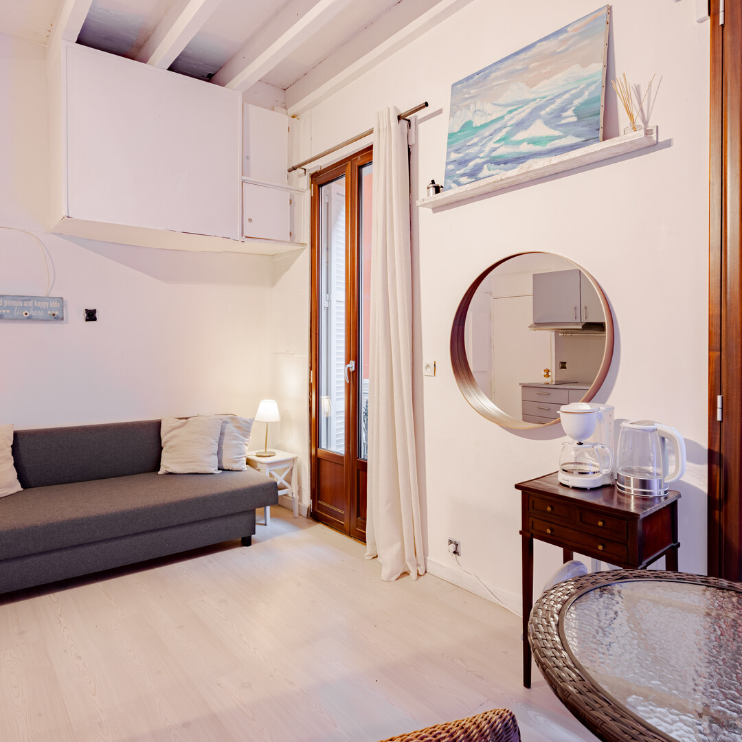 Located in a quiet street, this charming studio enjoys a peaceful atmosphere while offering privileged access to an exceptional view of the Grand Prix from the rue des Remparts.