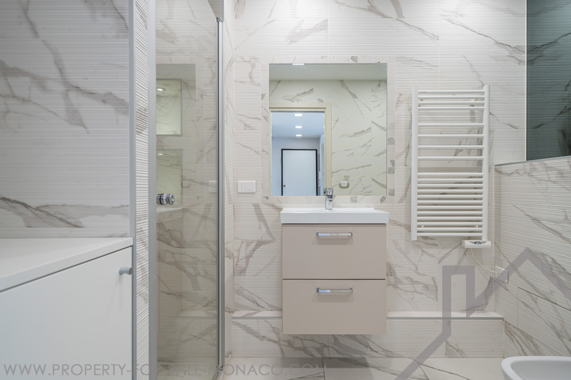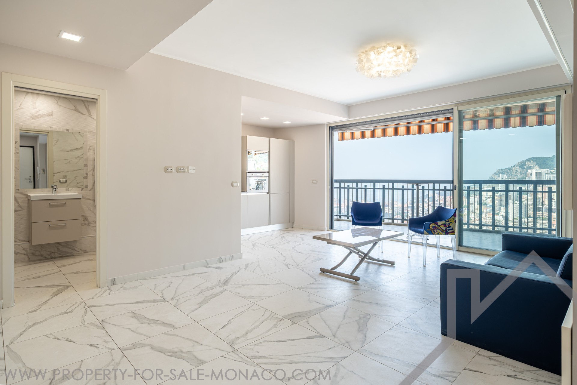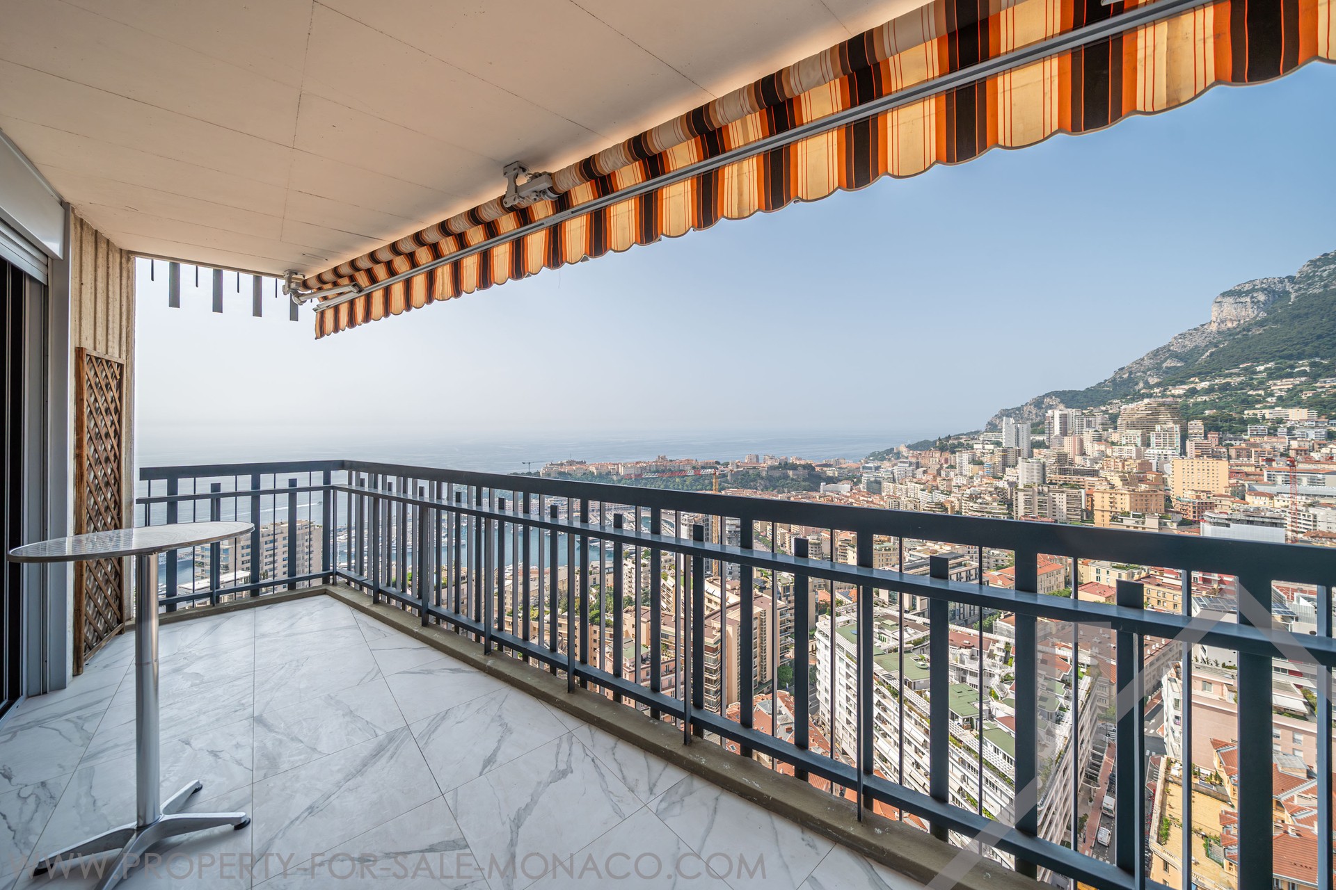 Perched on the 27th floor, this fully renovated apartment features breathtaking panoramic views of the sea, the harbor, and the Rock of Monaco, all while benefiting from a south-facing exposure that ensures abundant natural light.