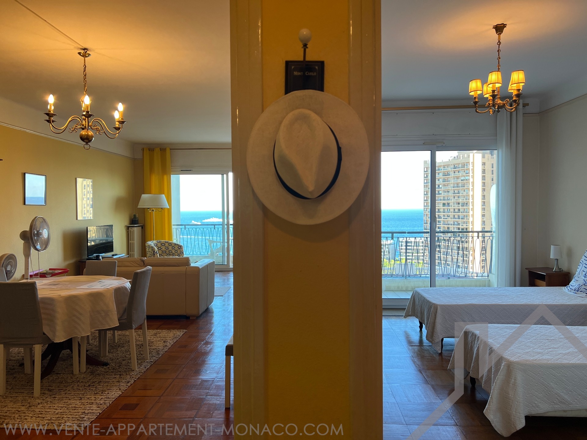 The apartment enjoys a nice view of the sea and the city.