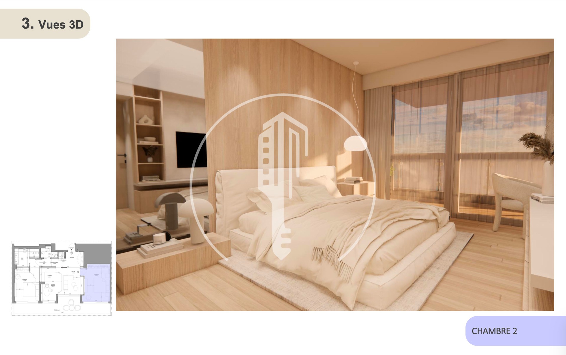 The apartment includes a parking space and benefits from concierge services, ensuring convenience and security.