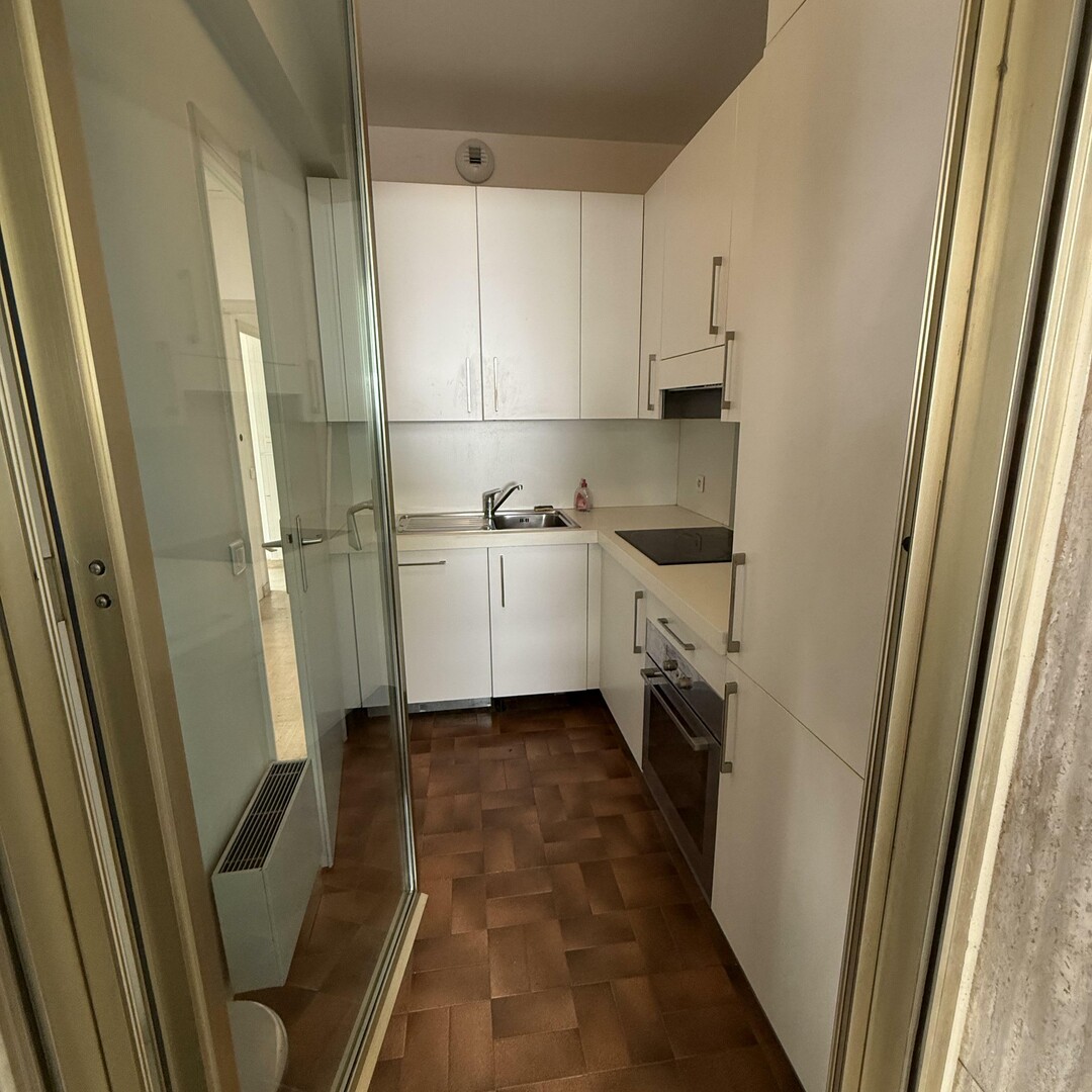 This apartment to renovate has great development potential. It consists of an entrance, a living room opening onto a wooded terrace, an independent kitchen also accessible from the outside, a bedroom with direct access to the terrace, a bathroom and a separate guest toilet. A parking space can be offered at an additional cost.