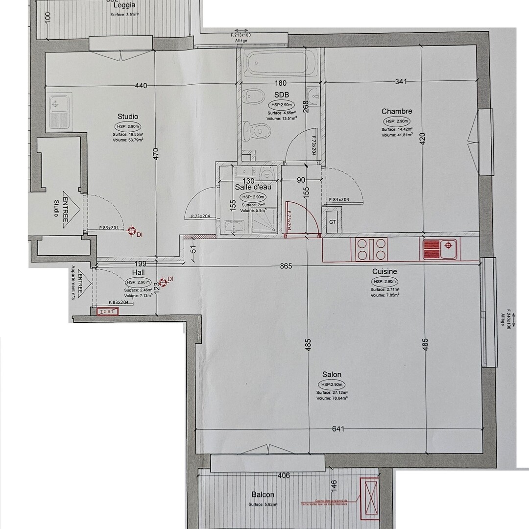 - a renovated studio, of 23m² + 4m², composed of a main room with equipped kitchen, closed loggia with laundry room, full shower room.