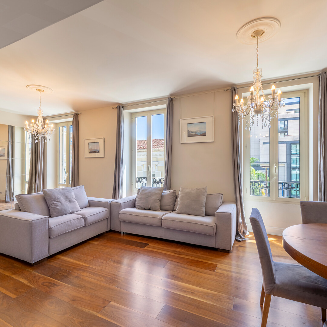 Elegant and bright apartment, former 4-room apartment redesigned into a large 2-room apartment, easily reconfigurable into 3-room apartment according to your needs. Completely renovated with high-end services and sold furnished.