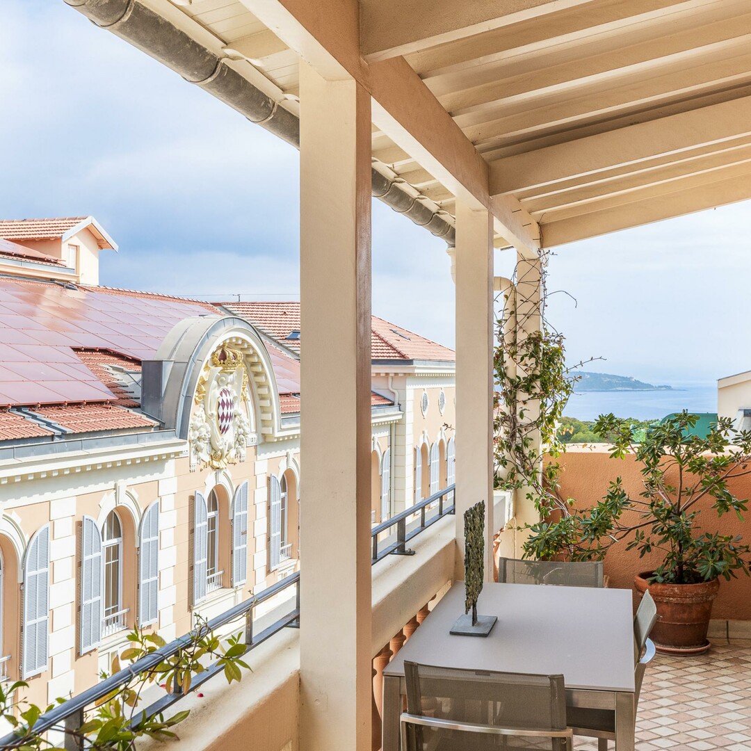 Nestled in the heart of the Rocher of Monaco, this elegant and unique apartment, a true rarity, is accessible via a private elevator. Luxuriously renovated, it spans a total area of 510m² and includes various outdoor spaces with Mediterranean accents that offer comfort and serenity to its residents. A private parking space right at the base of the building and a cellar complete this exceptional property.Every room in this extraordinary residence has been thoughtfully designed to provide privacy, comfort and character within a luminous and serene setting. It’s the perfect blend of old-world charm, modern touches, and an unconventional layout. From the entrance, the expansive, light-filled living room—complete with large French doors—boasts impressive ceiling heights and opens onto a sun-drenched terrace with Mediterranean allure, ideal for relaxing while admiring the rooftops of Monaco or the sea.
