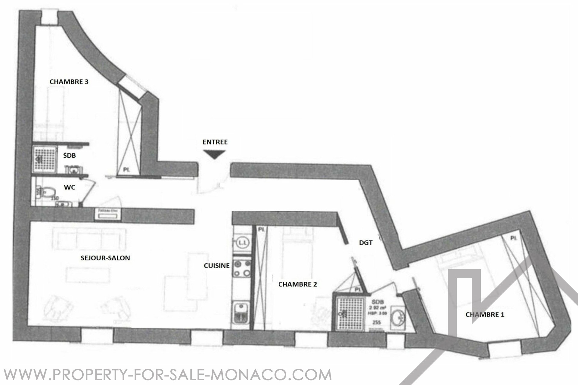 EXCLUSIVE Beautiful renovated 4-room apartment under Law 887, located on Boulevard des Moulins, in a classic building. It features an entrance, a bright living room with a modern, open kitchen equipped with high-quality materials. One bedroom with an en-suite bathroom, two additional bedrooms, a bathroom, and a separate toilet. A cellar completes this property.