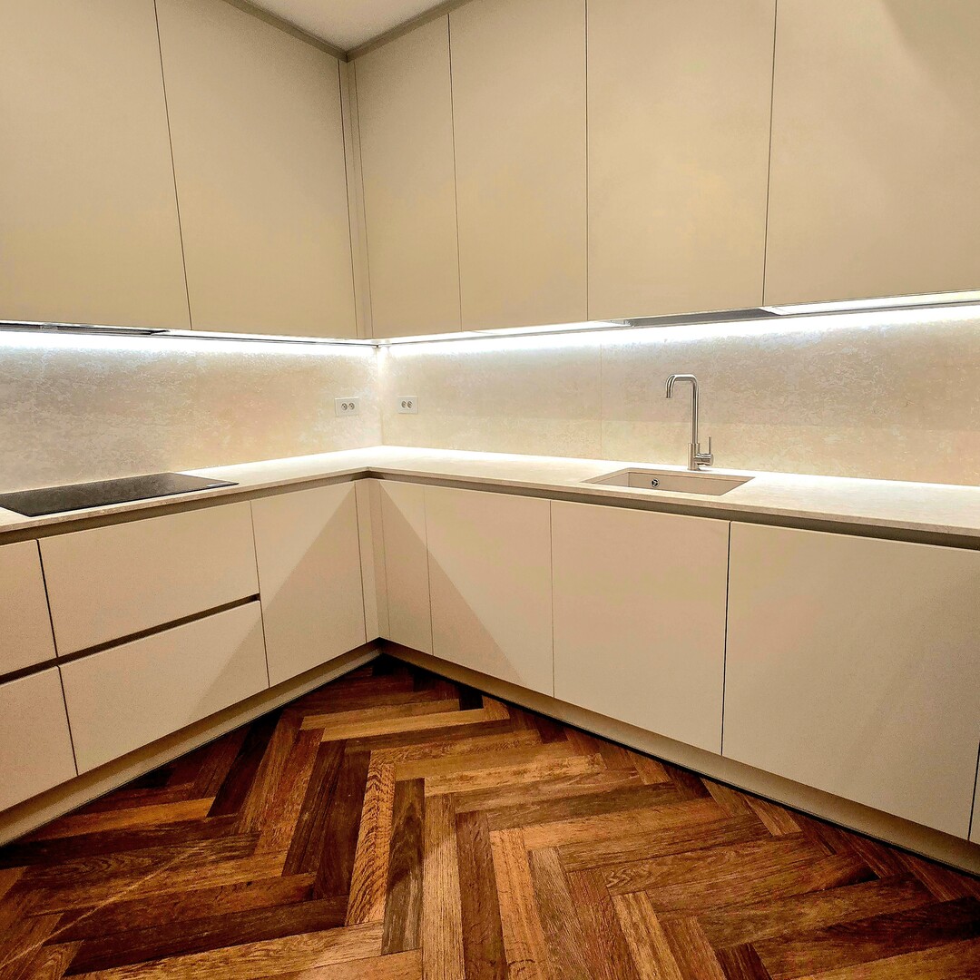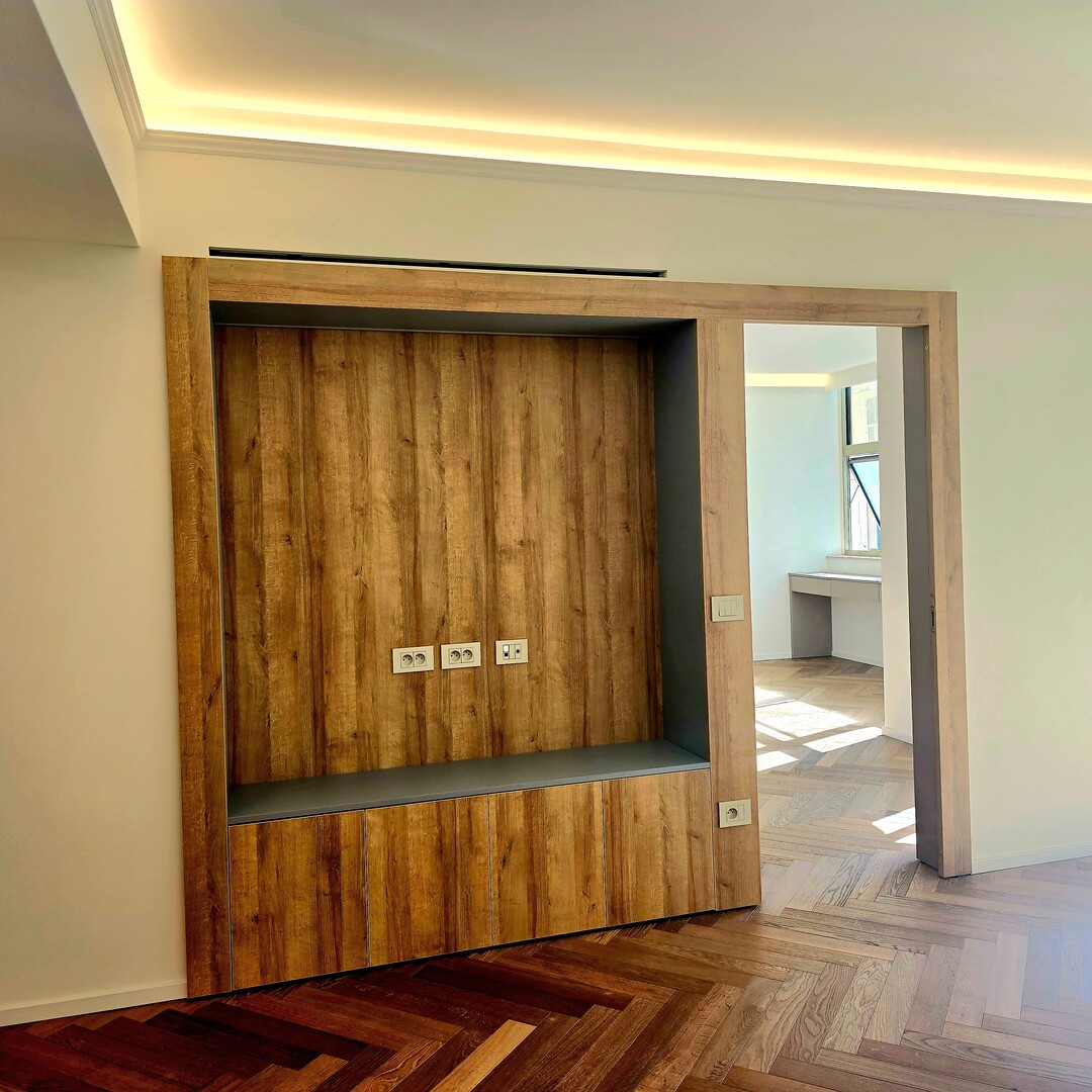 It consists of two en-suite bedrooms, including a master bedroom with fitted dressing room, a separate fully equipped kitchen, and a guest toilet. The materials are of high quality, the parquet floor brings a warm and contemporary touch, and the many storage spaces optimize the living space.