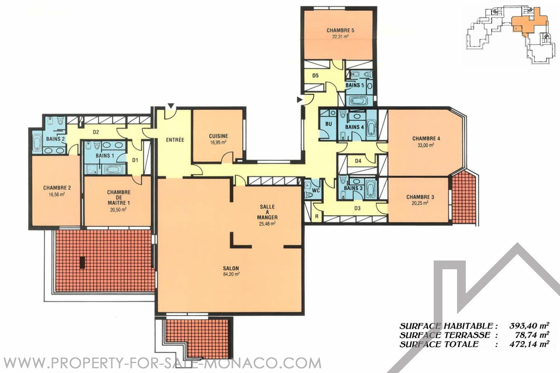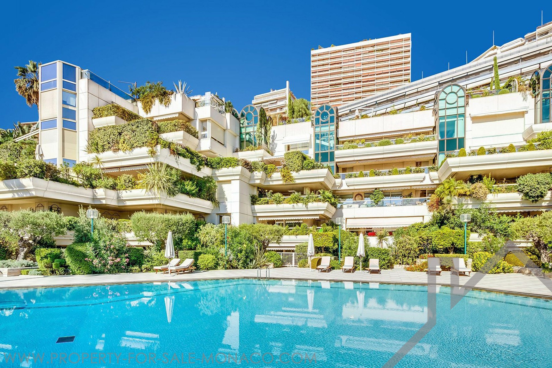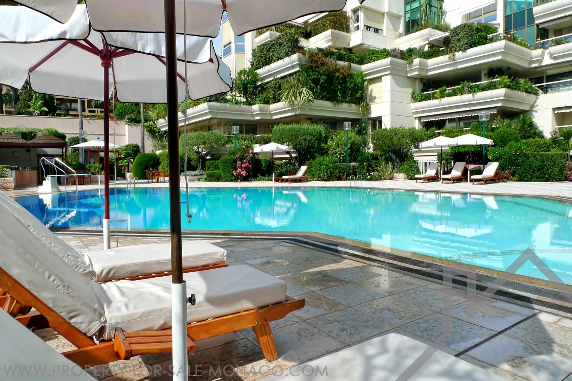 EXCLUSIVE Luxurious 6/7-room apartment with views of the garden and pool, located in the Larvotto district of Monaco. Situated in an elegant building with only 4 floors, this apartment offers a total area of 472 m², including 393.40 m² of living space and a 78.74 m² terrace. It features a large living/dining room that opens onto the terrace, a separate kitchen, five spacious bedrooms, five bathrooms, and a large loggia. A cellar, three parking spaces, and a poolside changing cabin complete this property.