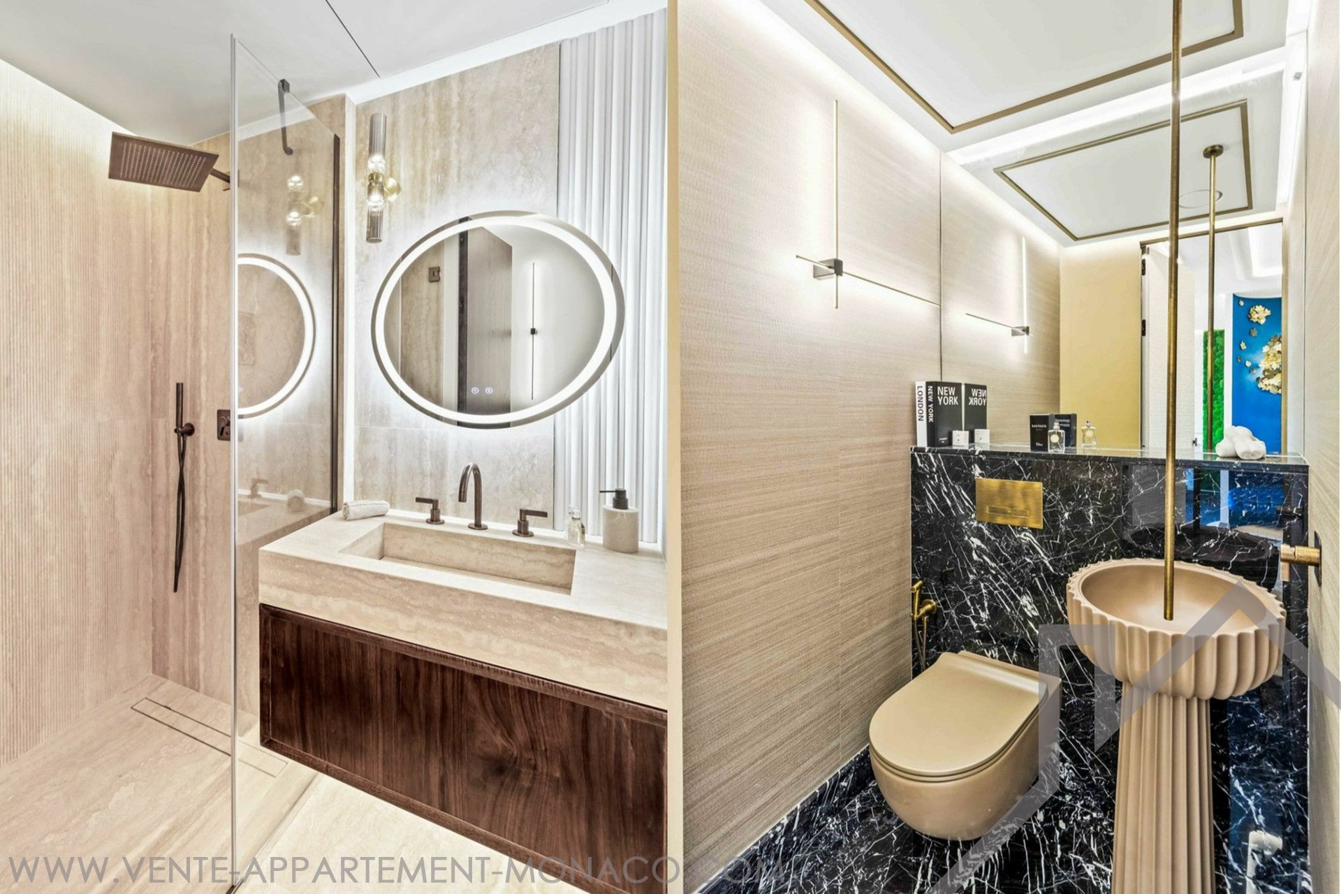 Located in the prestigious Château Périgord I residence, this exceptional apartment has been carefully refurbished with high-end materials and finishes. Bathed in natural light, it offers a stunning unobstructed view of Monaco's rooftops and the sea. It features a spacious entrance leading to a generous living room, followed by a dining area with an open-plan kitchen. The sleeping area includes a master suite with a walk-in closet and private bathroom, as well as two additional bedrooms, each with its own bathroom. A laundry room and guest toilet complete this property. Parking available.
