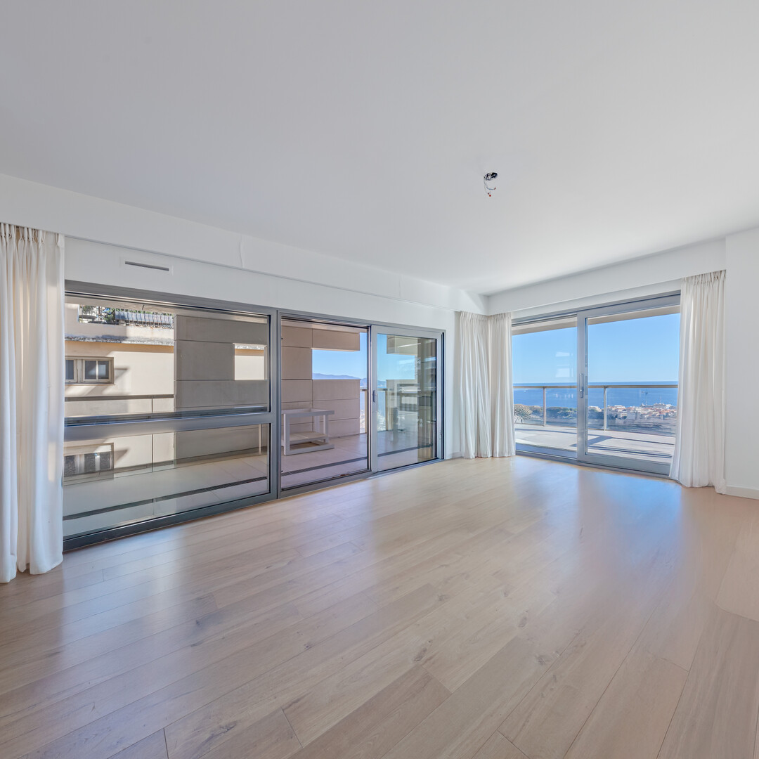 A magnificent renovated apartment with spectacular views of the Rock of Monaco and the sea.