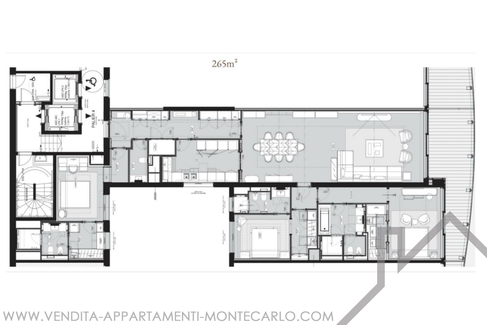 This prestigious sea-view apartment enjoys an exceptional location in the Larvotto district, just steps from the beaches, restaurants and boutiques. With a total surface area of 270 sqm, including a 23 sqm terrace, it offers an outstanding living environment within a residence featuring services worthy of the finest five-star hotels.