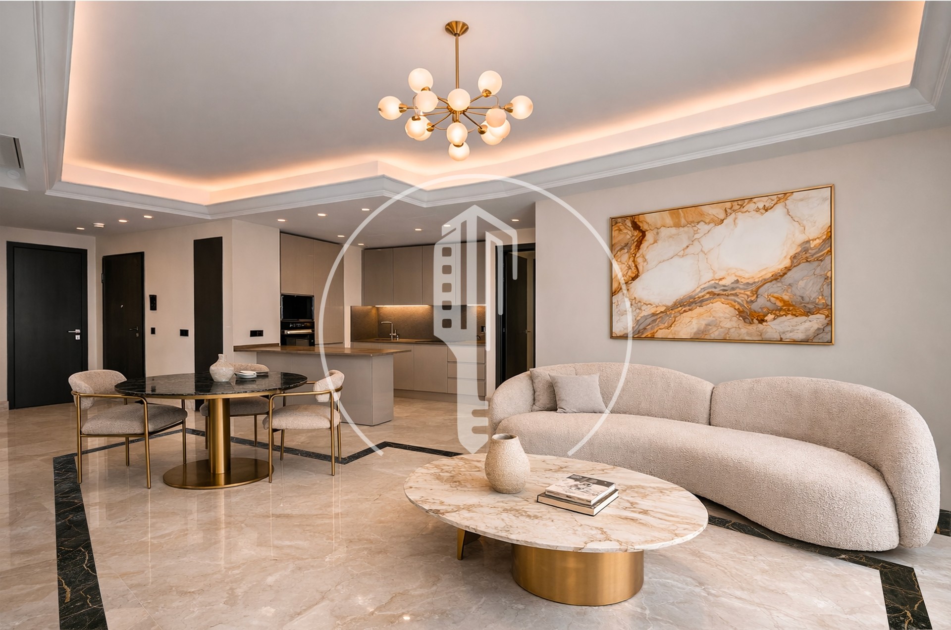 With a living area of 1,200 sq ft, this apartment has been designed with high-quality materials and particular attention to comfort, ergonomics, and aesthetics.