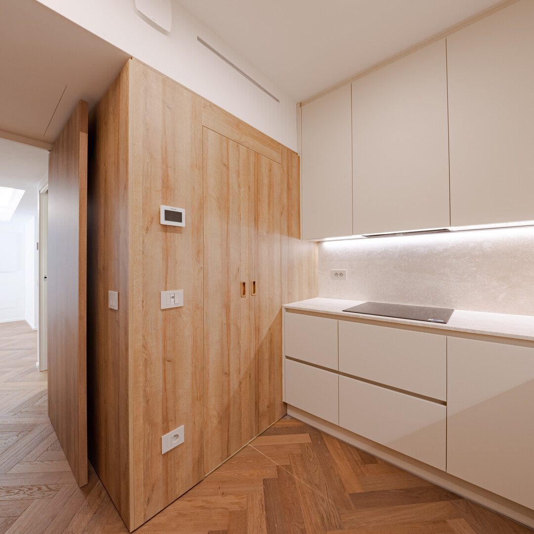 With a generous surface area, it consists of a large, bright living room with open kitchen, two bedrooms, two bathrooms and a pleasant balcony. The materials and finishes have been carefully chosen to combine elegance and comfort on a daily basis.