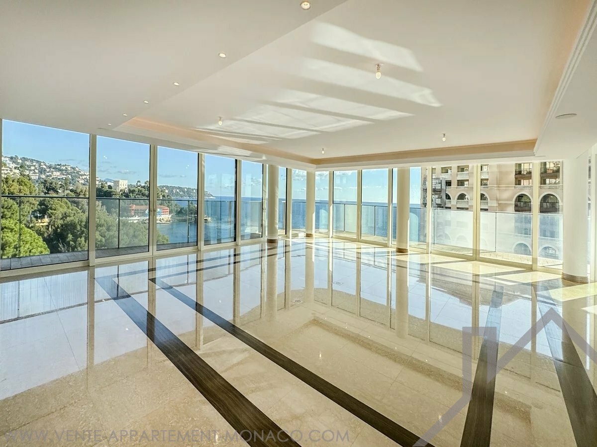 This outstanding property perfectly combines the privacy of a private residence with the comfort and services of a five-star hotel, featuring a first-class concierge service. The location is ideal for families, as the International School of Monaco is situated within the same building. The apartment boasts impressive proportions and offers seven luxurious bedrooms, along with a spacious, light-filled living room opening onto expansive terraces. From here, one can enjoy a breathtaking, unobstructed panoramic view of the Mediterranean Sea, with a prime south-facing orientation.