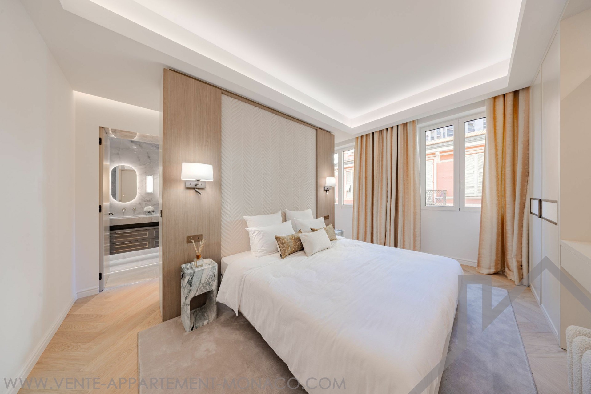 EXCLUSIVE In the heart of the Golden Square, this stunning three-room apartment has been fully renovated with high-end finishes. It consists of two bedrooms, each with its own ensuite shower room, as well as a guest toilet. Additionally, a fully equipped and fitted separate kitchen completes the apartment, along with a bright living/dining room that opens onto a balcony overlooking the Golden Square with a sea view. The apartment also includes a cellar.