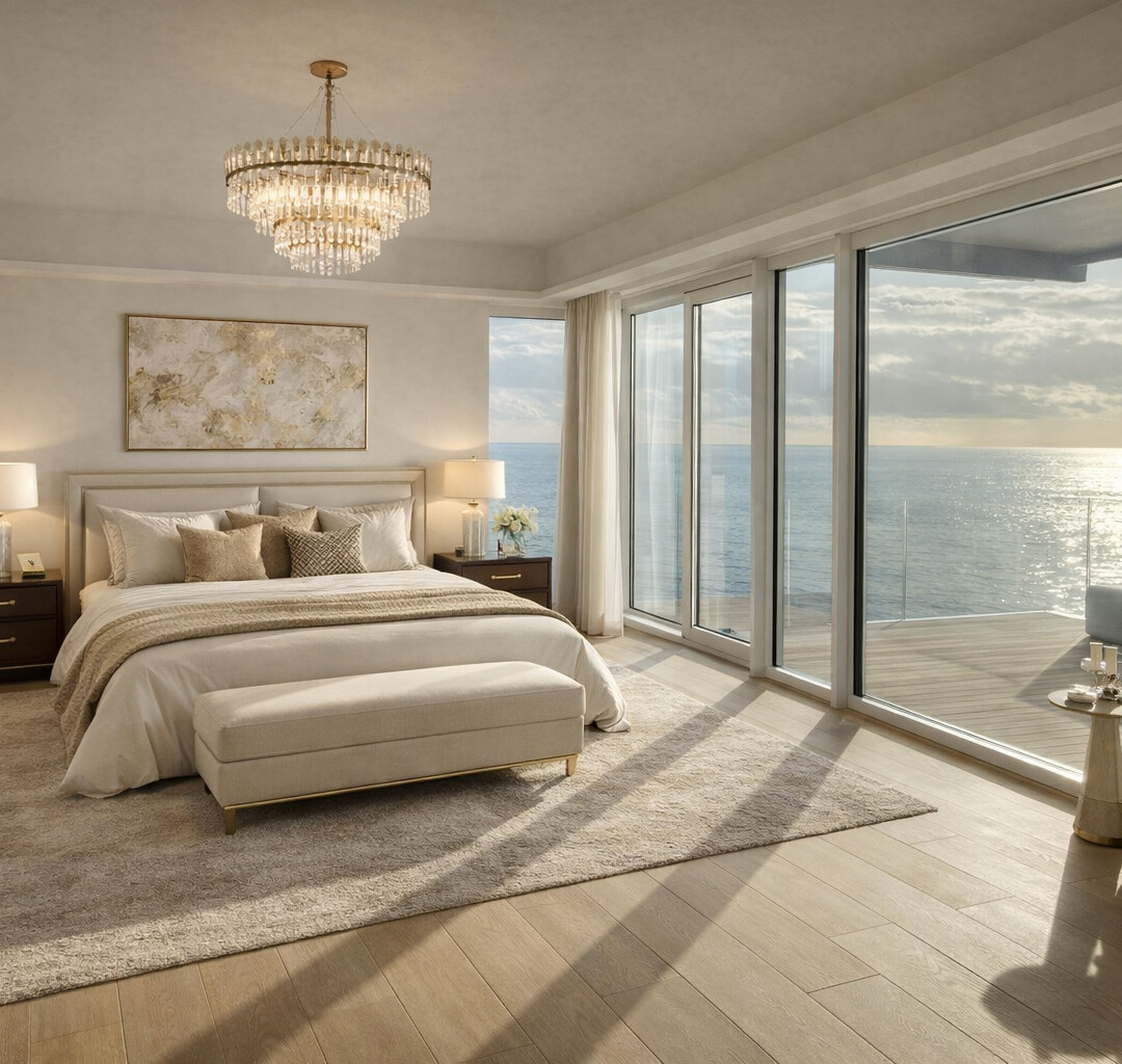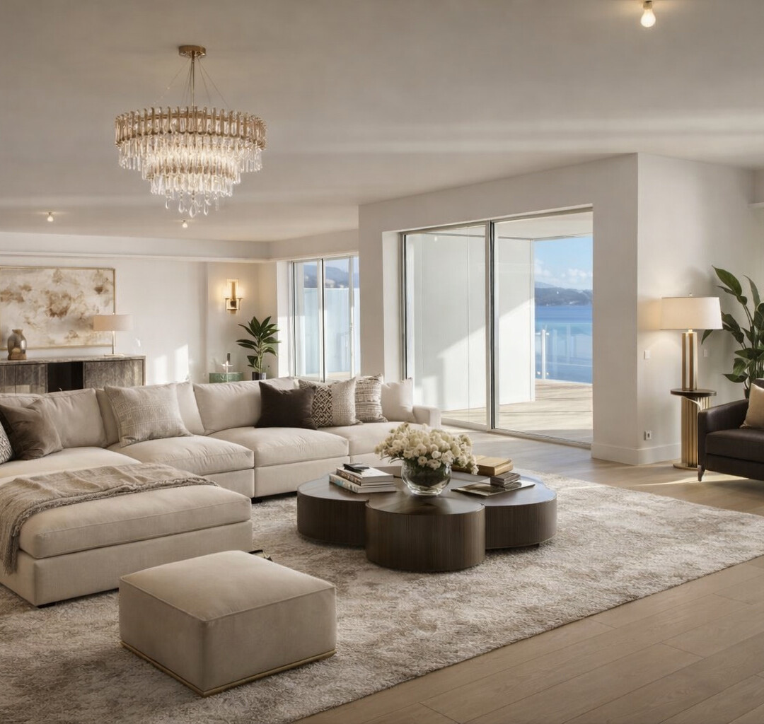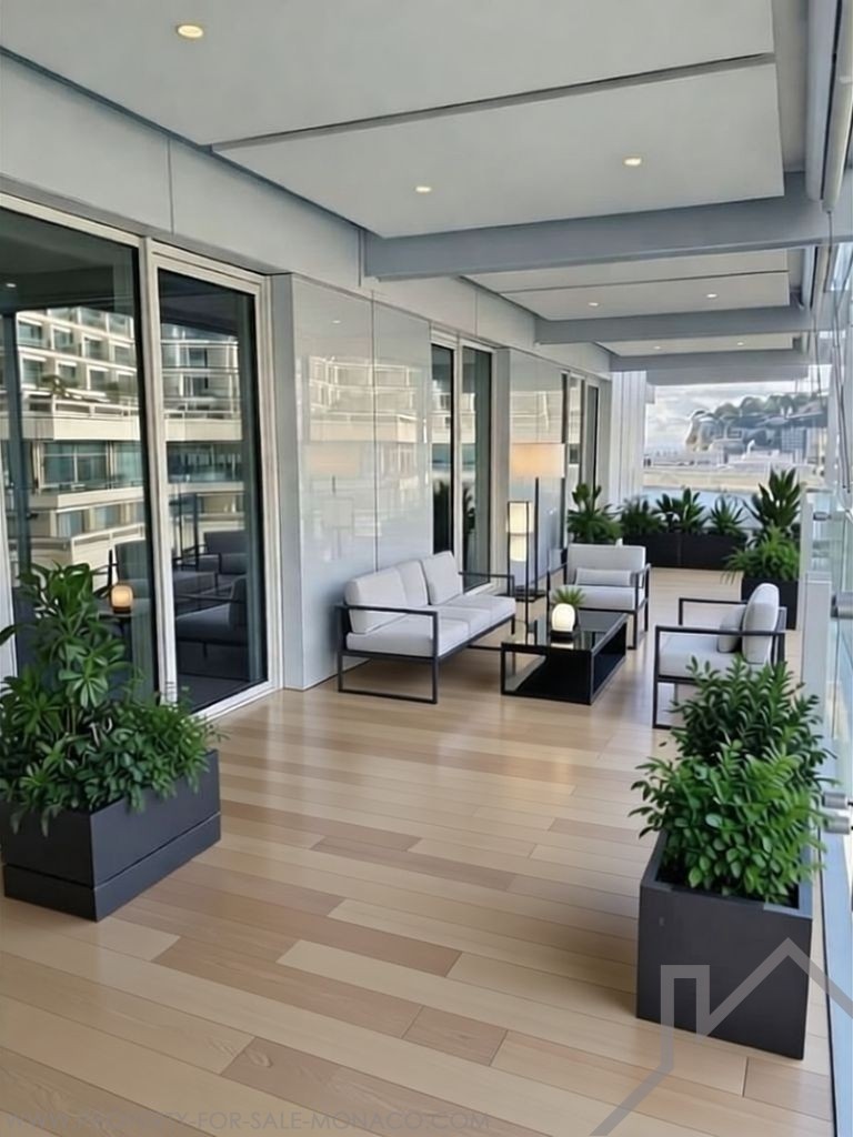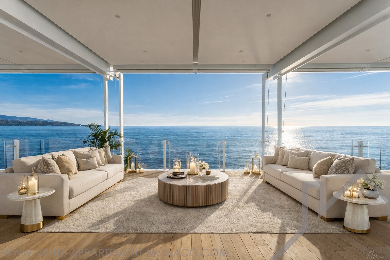 The angle apartment bathed in light, facing the sea, benefiting from the best exposure, opens onto large terraces offering a 360° view.