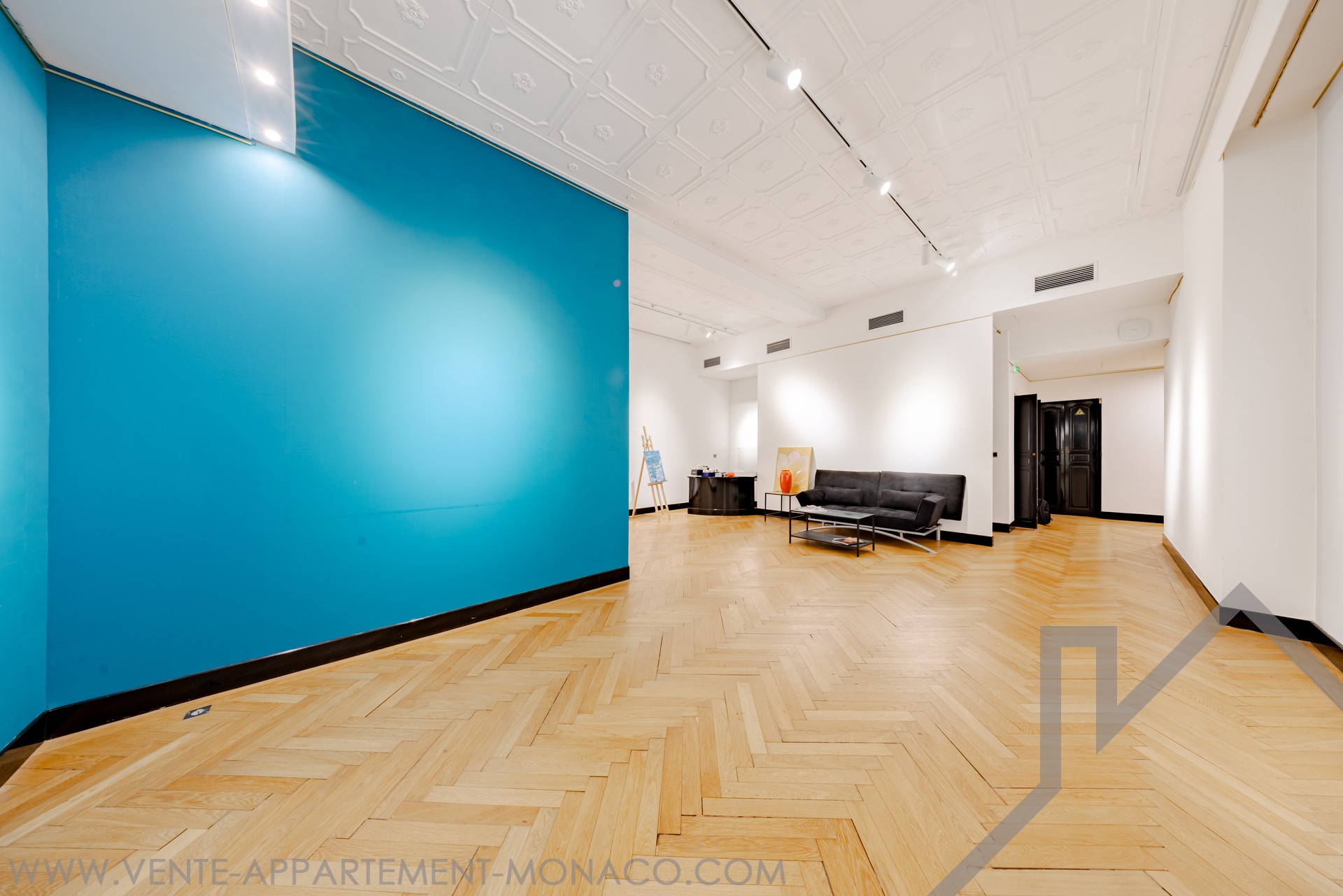 The property offers excellent visibility thanks to a window of about 5 linear meters. Currently fitted out for an art gallery activity, it consists of a large reception and exhibition space, an office, a storage area and a large exhibition room. The volumes are particularly generous and sublimated by a high ceiling.