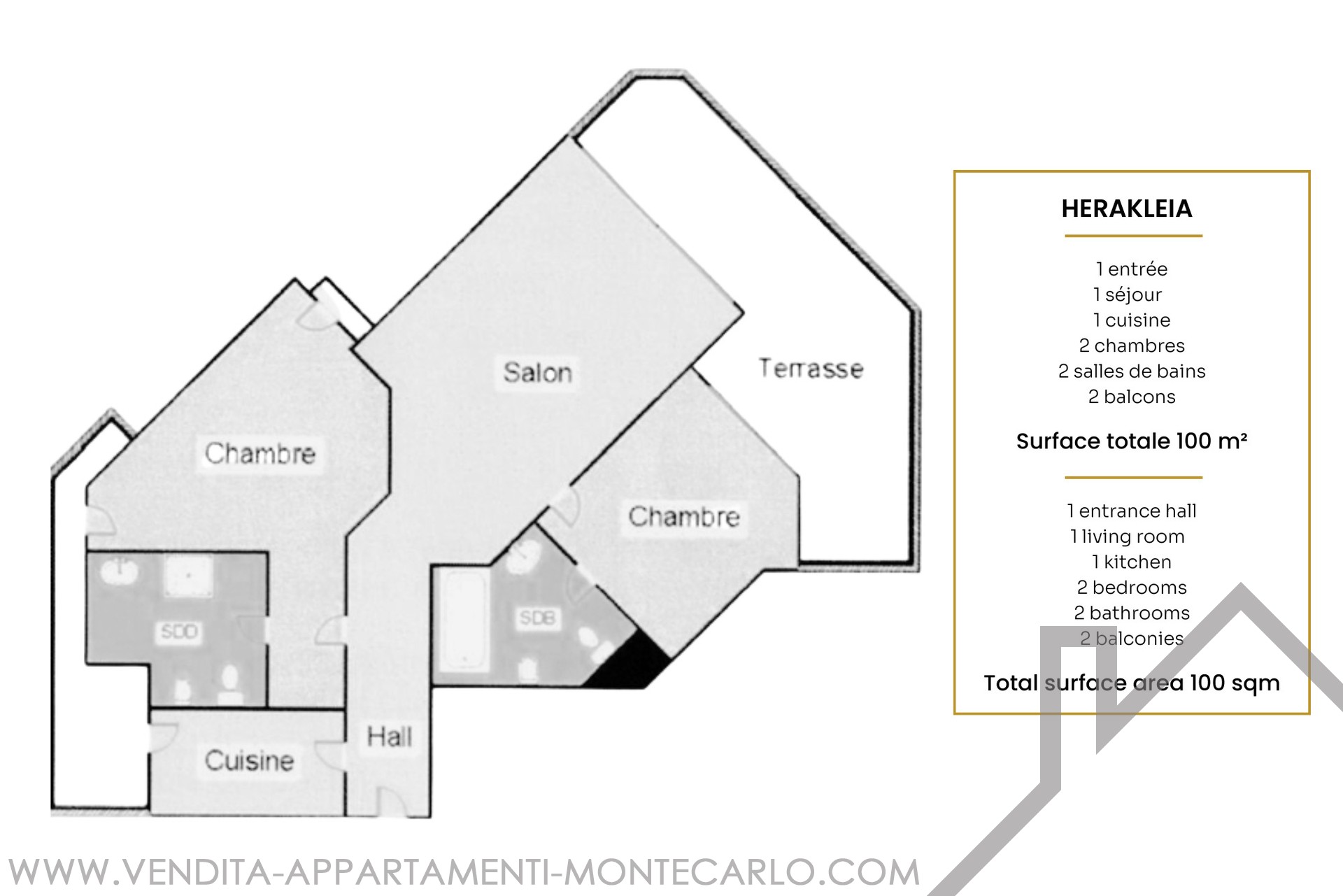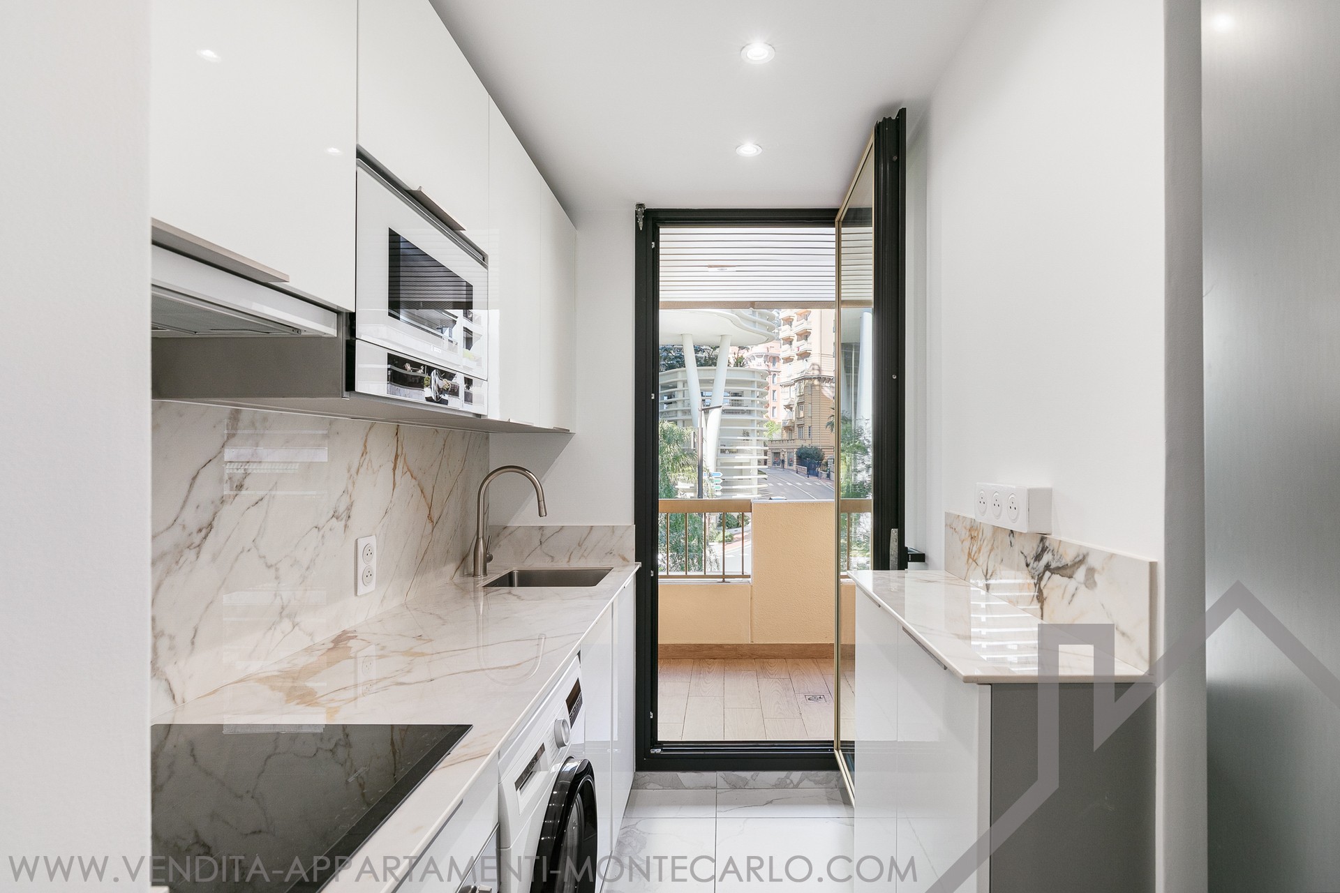 We offer for sale a superb, fully renovated air conditioned 3-room apartment with a total surface area of 100sqm, located on a high floor in the luxury Herakleia residence with concierge service, in the heart of Monaco.