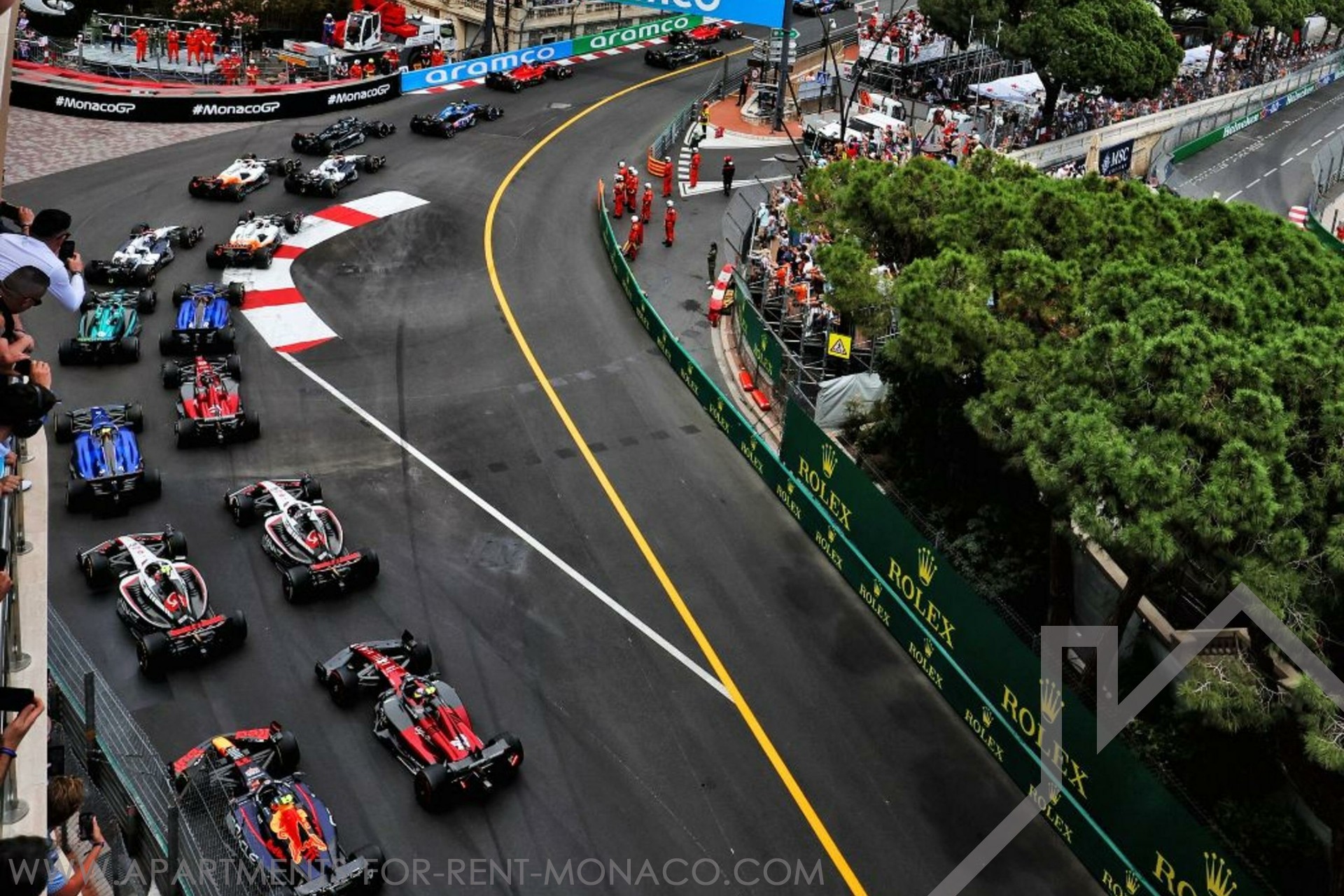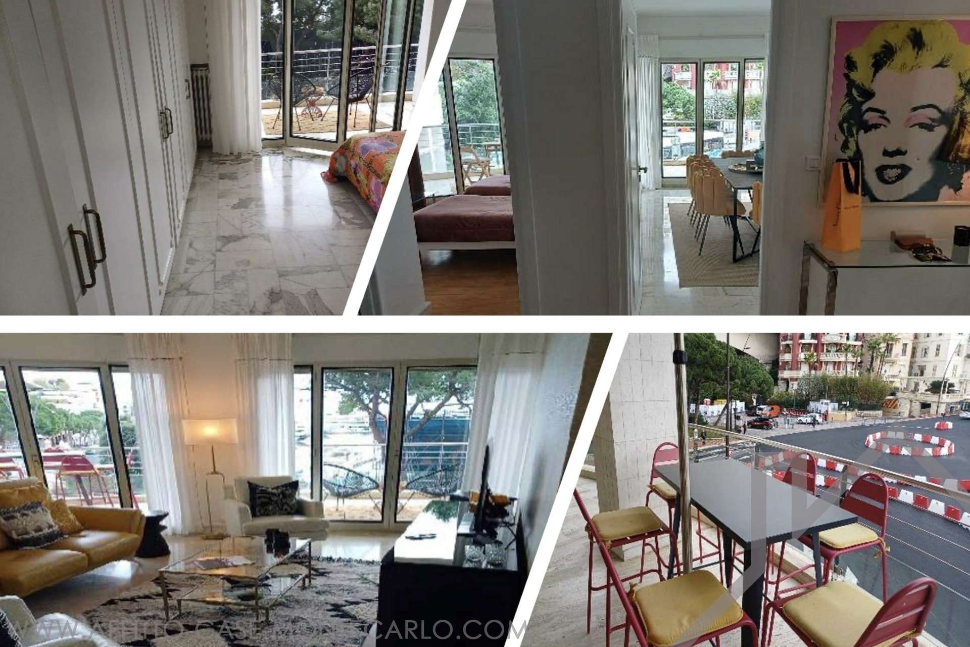 A spacious wraparound terrace offers a prime view of the Formula 1 circuit. The apartment includes 40 passes for the Monaco Grand Prix.