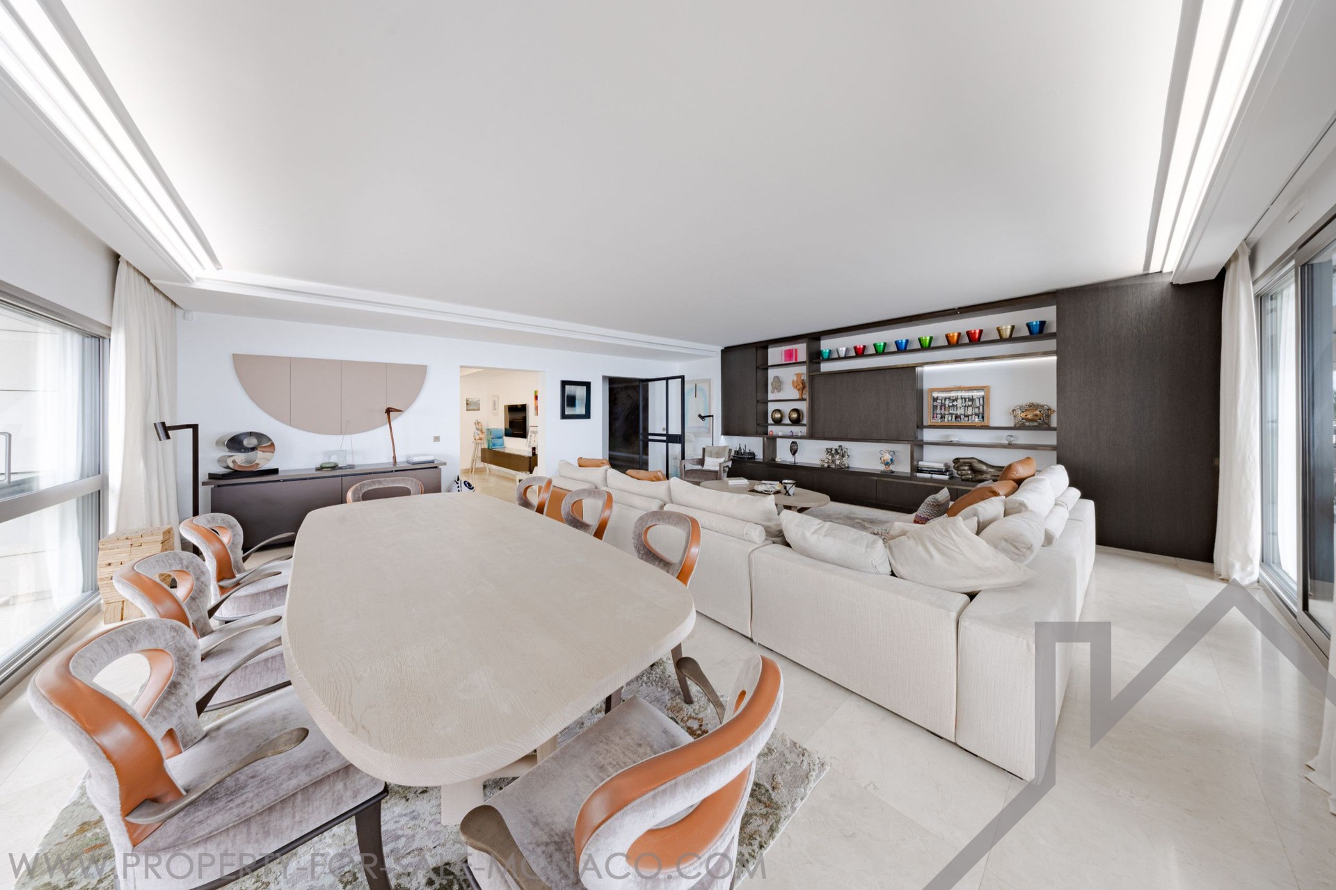 CO-EXCLUSIVITY A family apartment offering a rare balance of space, elegance, and panoramic views. In excellent condition, the interior is decorated and renovated by Obumex, and the custom-made furniture by Maison Liagre reflects understated luxury and timeless sophistication: Large living and dining area: A bright and welcoming space, perfect for entertaining. Office/family room: A versatile area that can be converted into a bedroom or a gym. Master suite: two large walk-in closets and an en-suite shower room. Second bedroom: an en-suite bathroom and plenty of built-in storage. Third bedroom: ideal for children or guests, with an en-suite shower room. Kitchen: open-plan, fully equipped, with a laundry room and a wine cellar. Two private elevators, as well as a service elevator for staff.