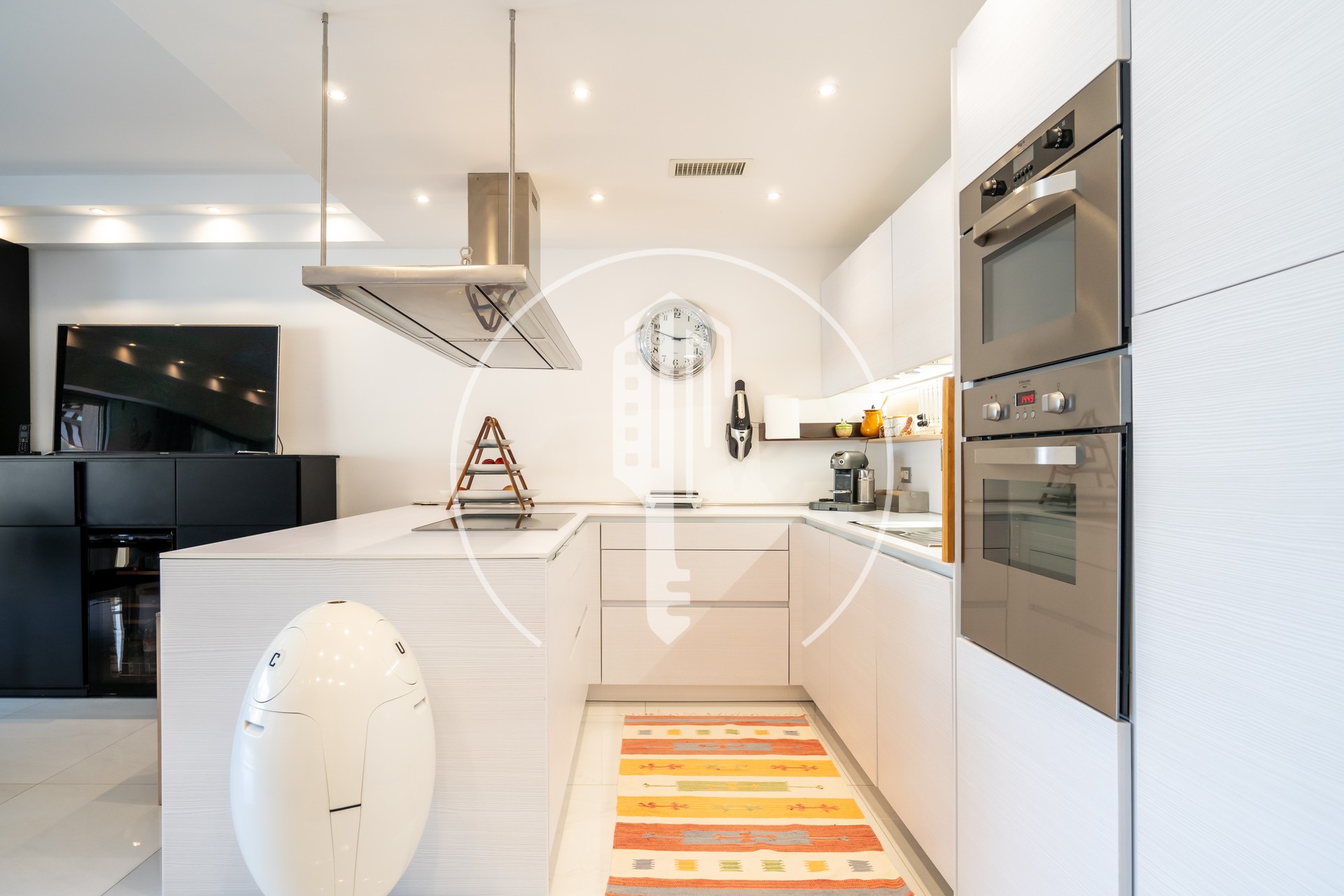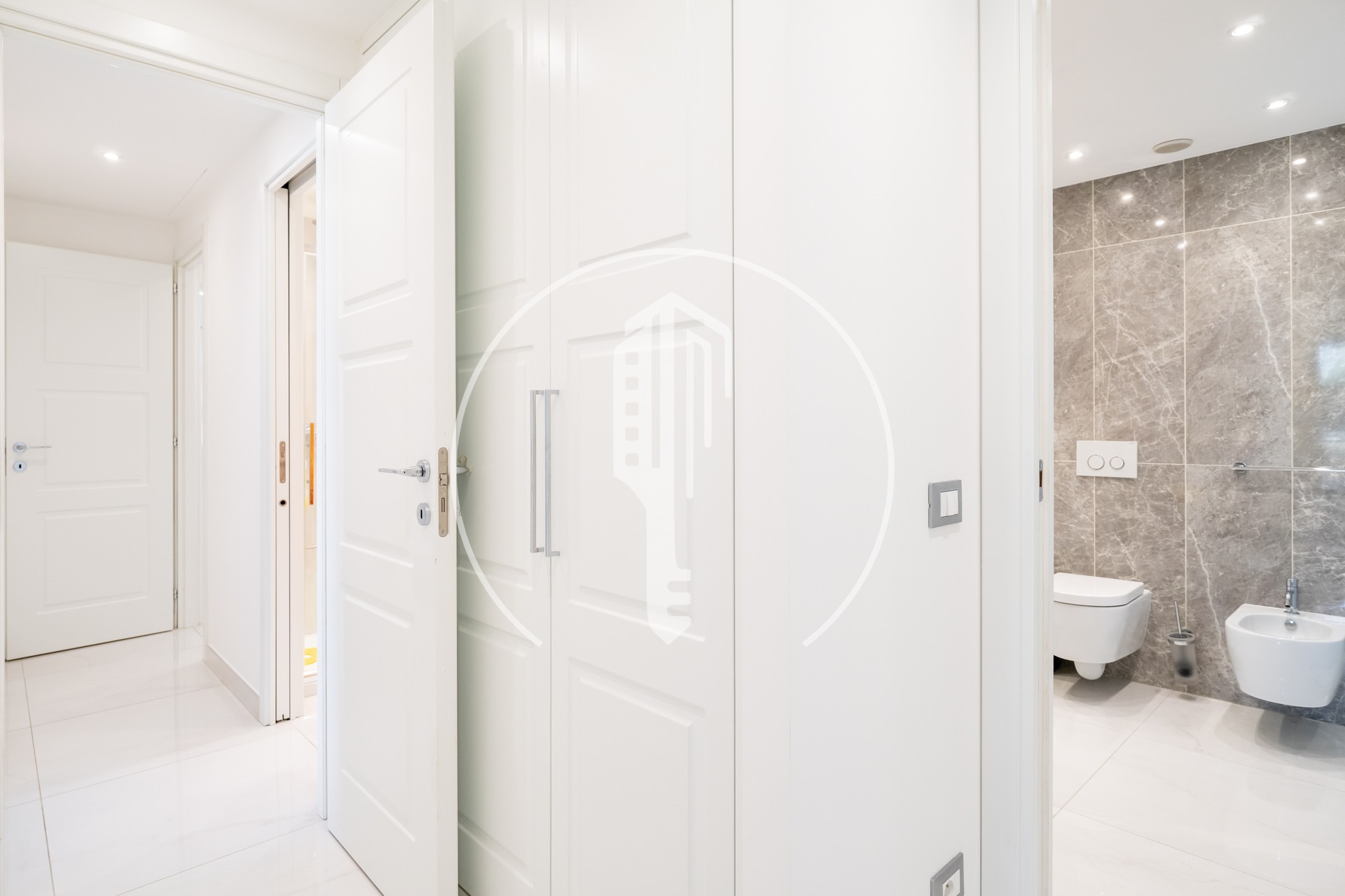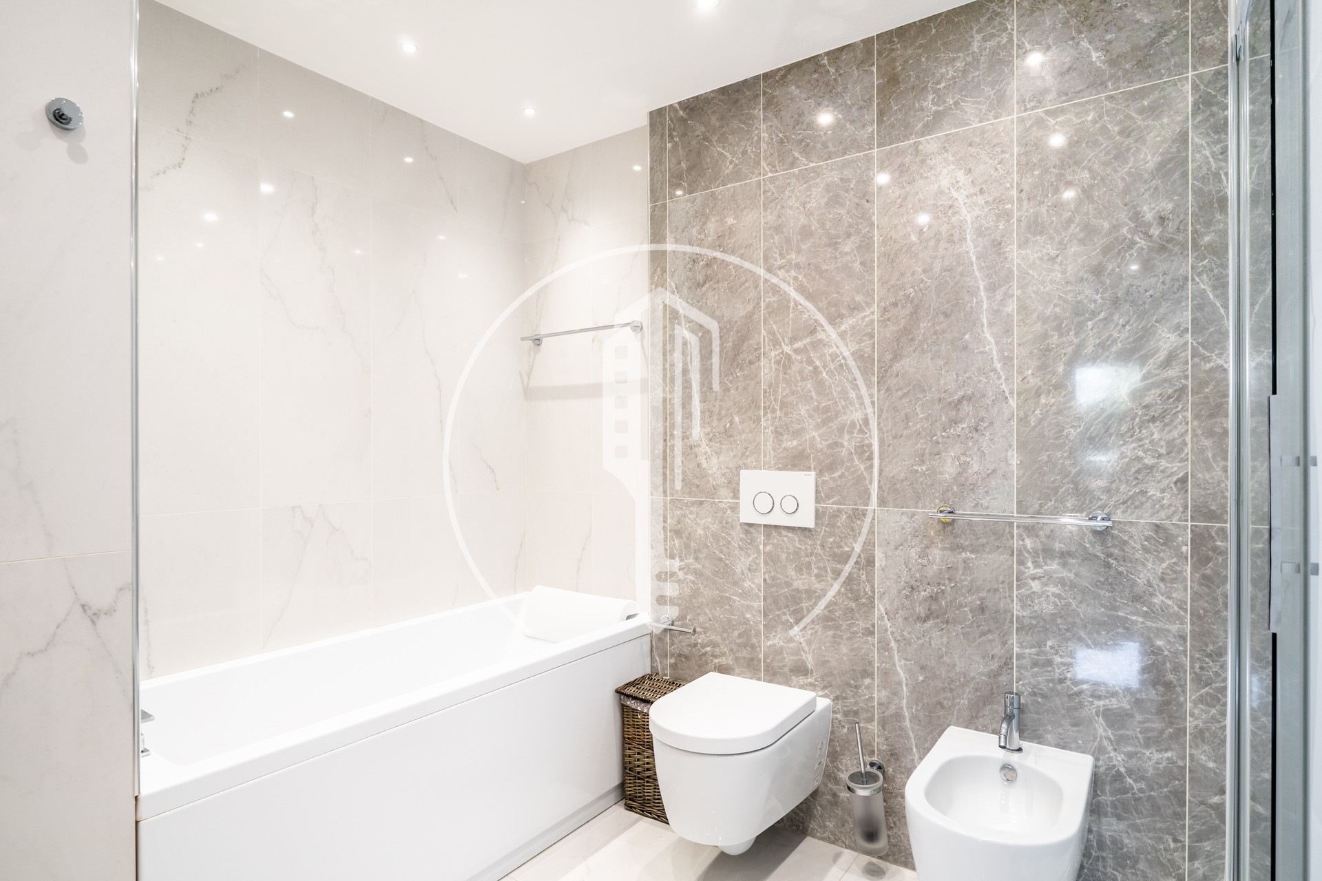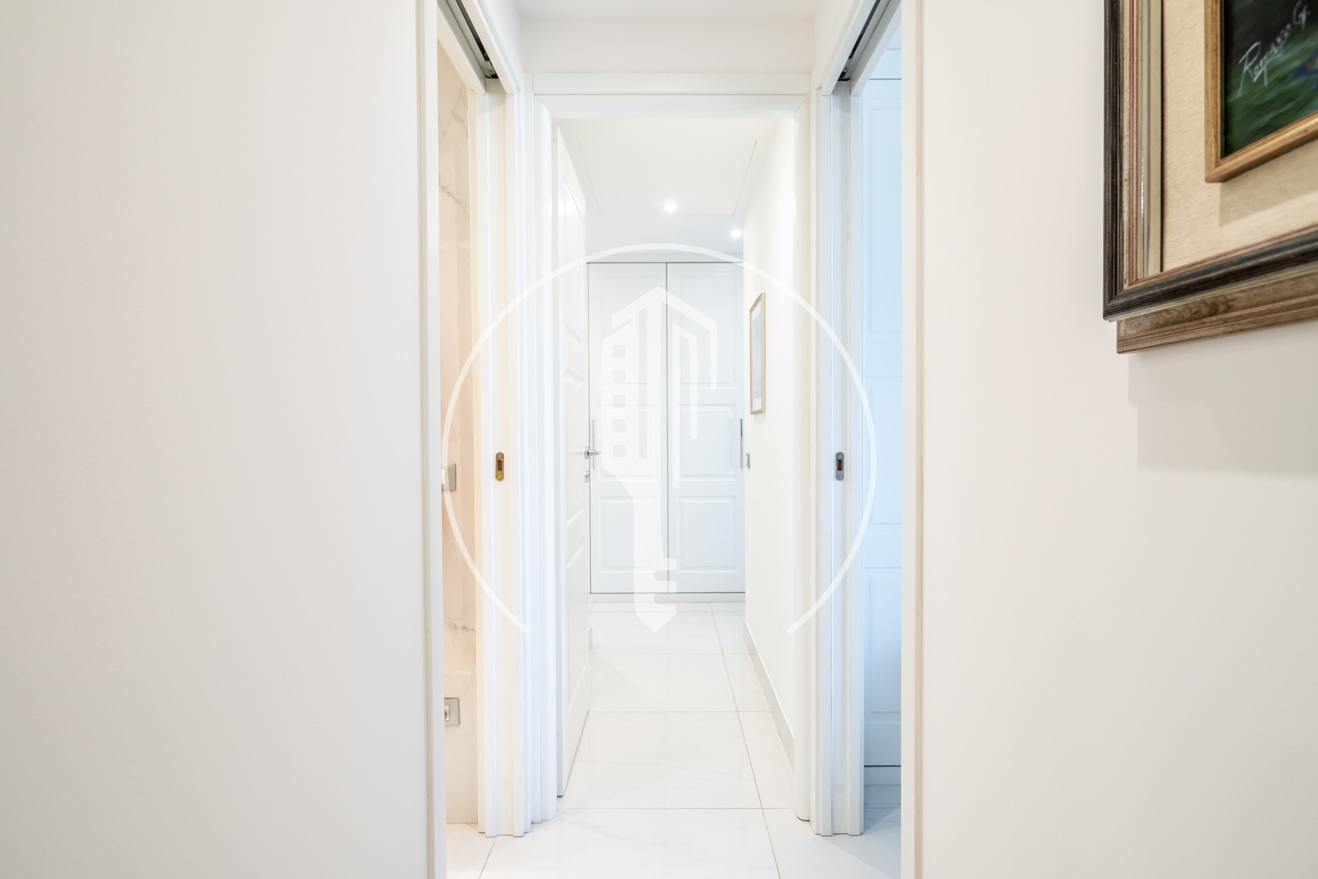 It comprises an entrance hall, a spacious living room with fully equipped open-plan kitchen, a master bedroom with dressing room and en-suite bathroom with WC, as well as a second bedroom with dressing room and separate shower room with WC.