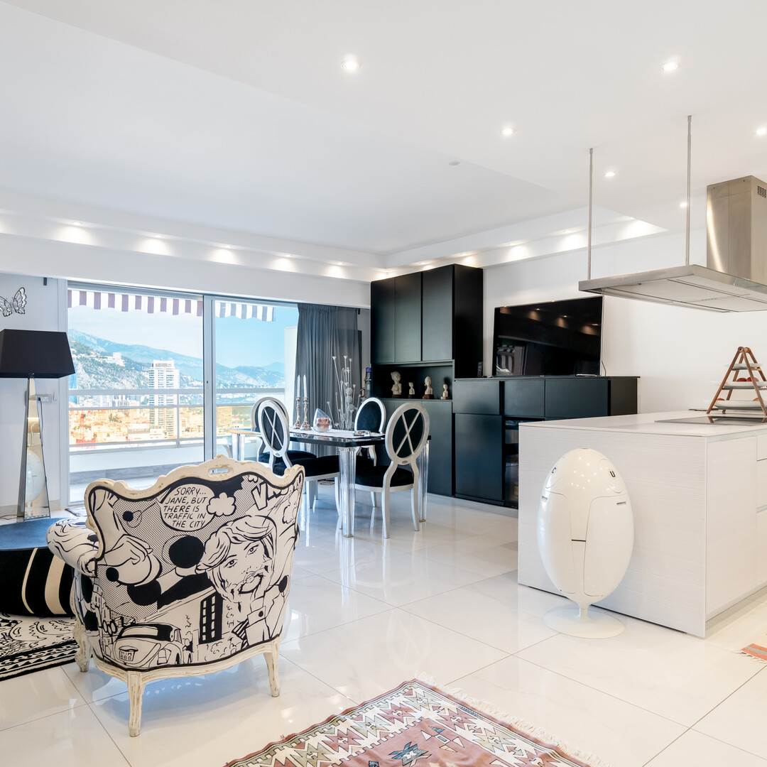 With an interior surface of 90.68 sqm and a terrace of 27.70 sqm, this bright high-floor 2-bedroom apartment enjoys remarkable panoramic views over the sea and the Port of Monaco.
