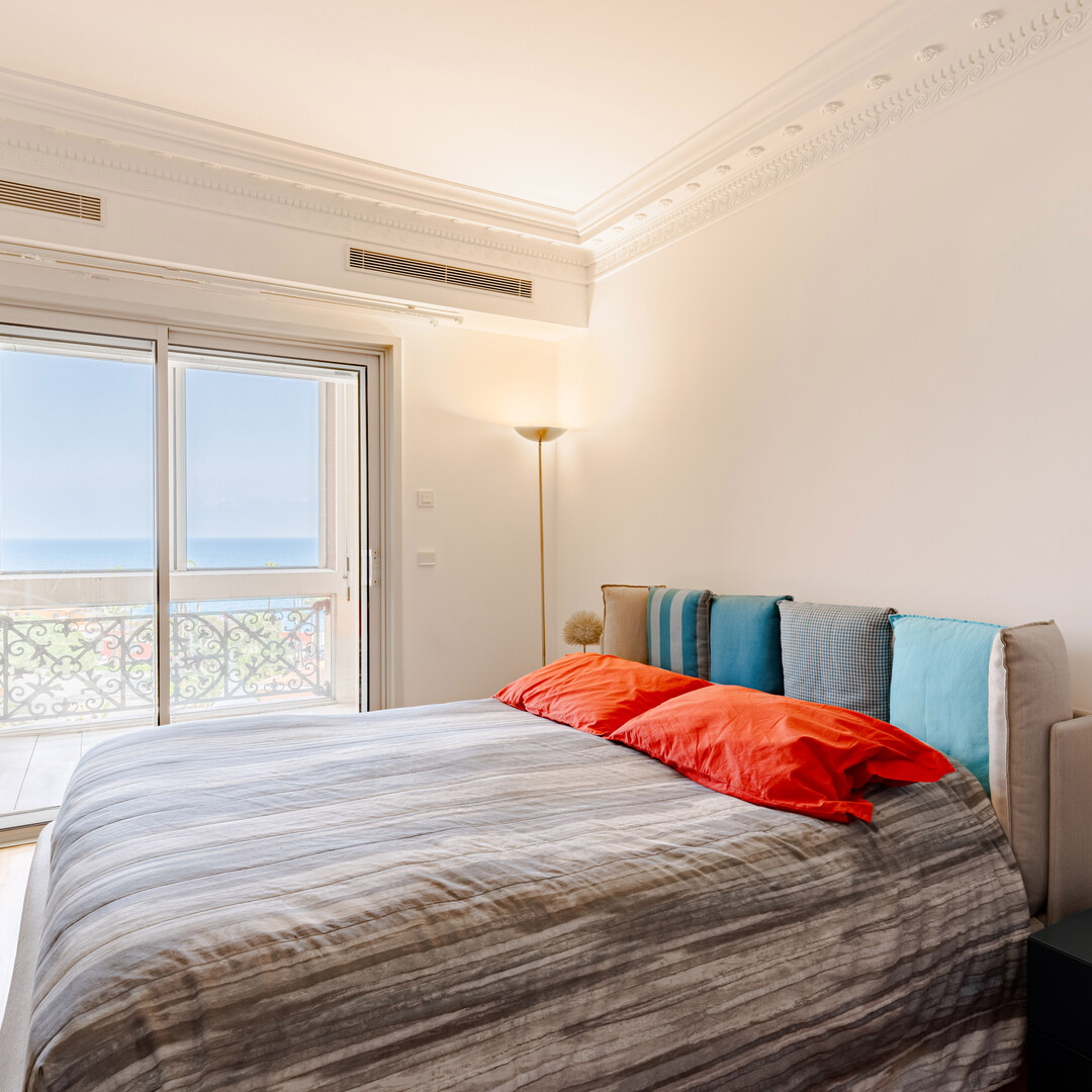 This beautiful and spacious three-room apartment opens onto a welcoming entrance hall, leading to a generous living room bathed in light, directly opening onto a terrace with breathtaking views of the sea and Monaco's famous marquee. The fully equipped kitchen, with its practical dining area, is a real call to conviviality and shared moments, while the two bedrooms, each opening onto a second private terrace, guarantee privacy and serenity. Complemented by two elegant bathrooms, these rooms offer an idyllic living environment.