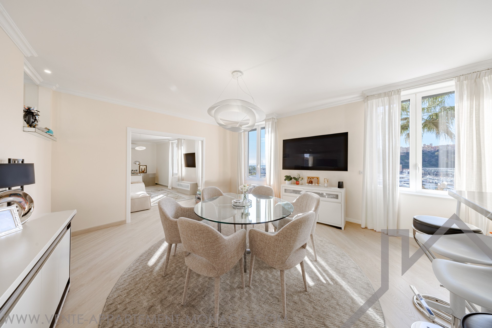 In the heart of Monte-Carlo, a stone's throw from the Carré d'Or, this superb 6-room apartment of 185 m² under the law 887 offers a breathtaking view of Port Hercule.
