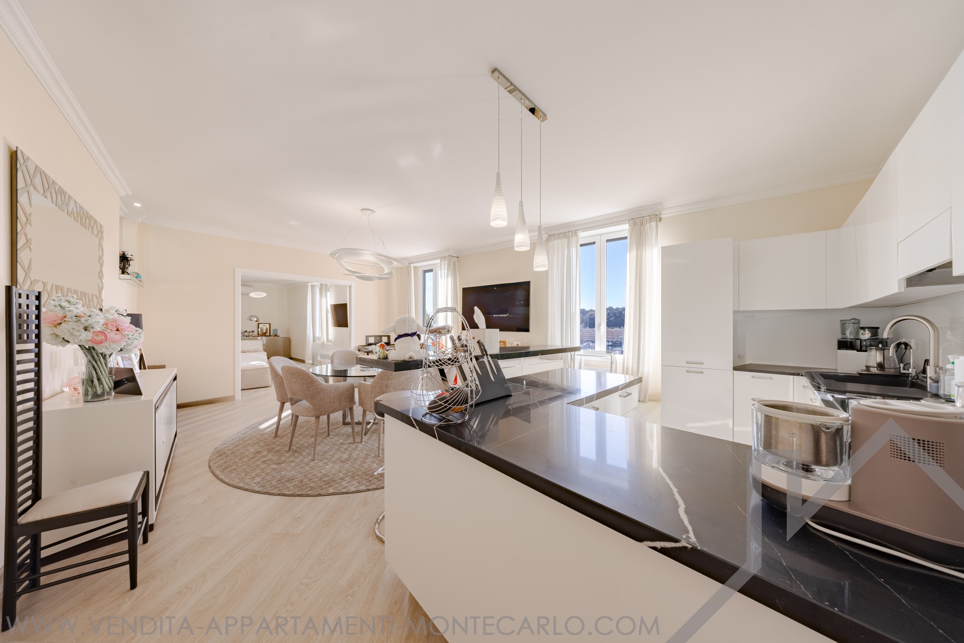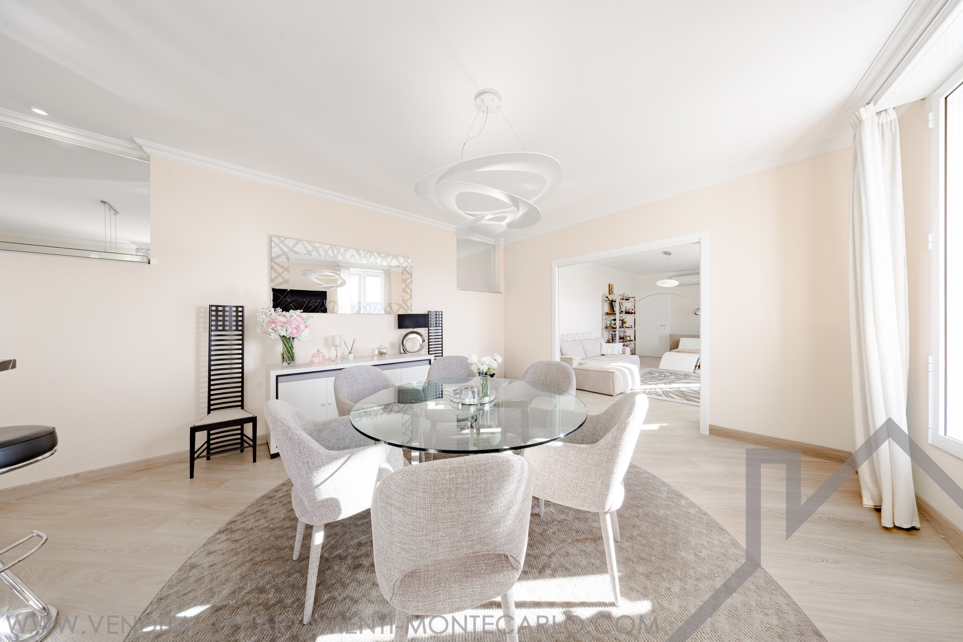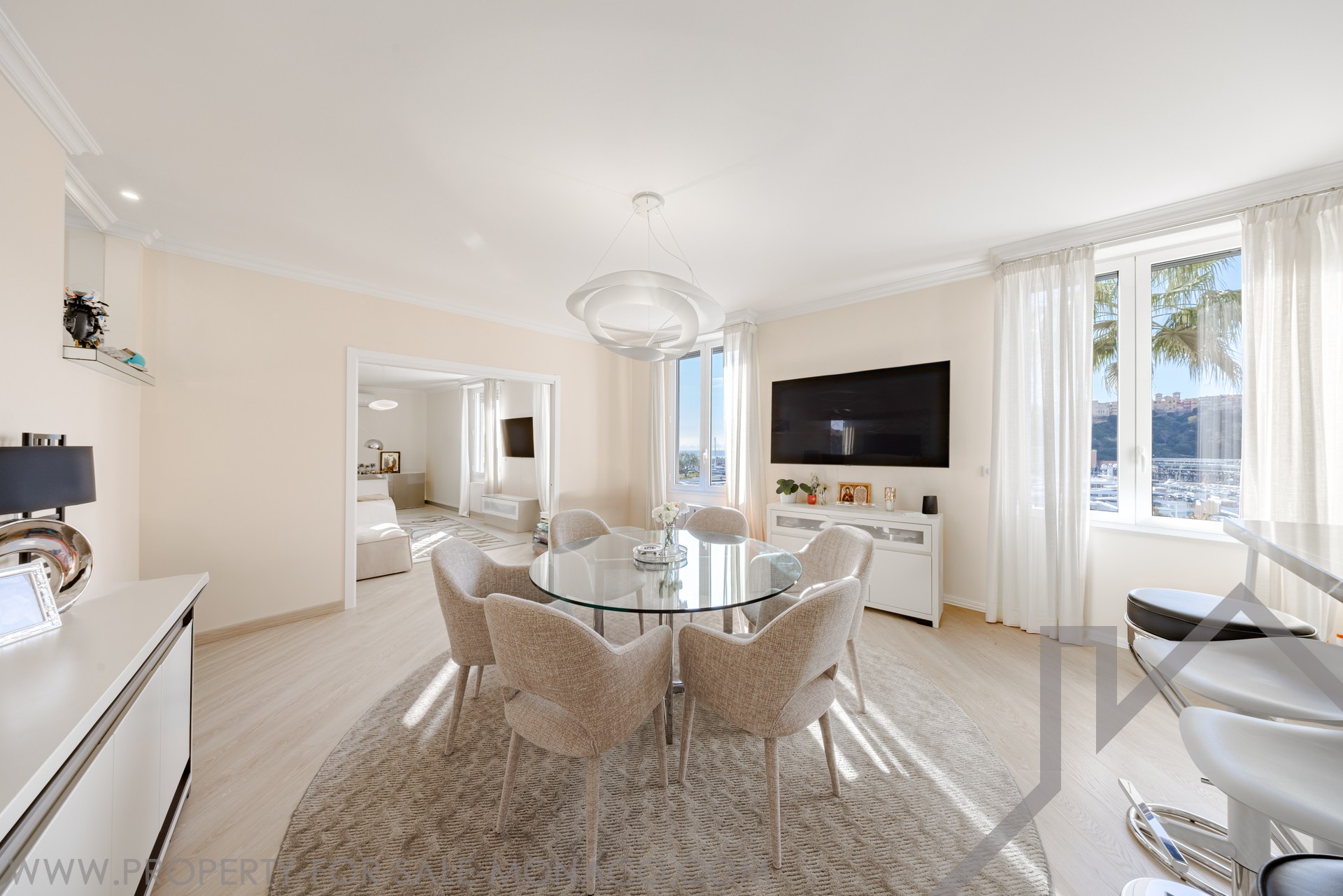 In the heart of Monte-Carlo, a stone's throw from the Carré d'Or, this superb 6-room apartment of 185 m² under the law 887 offers a breathtaking view of Port Hercule.