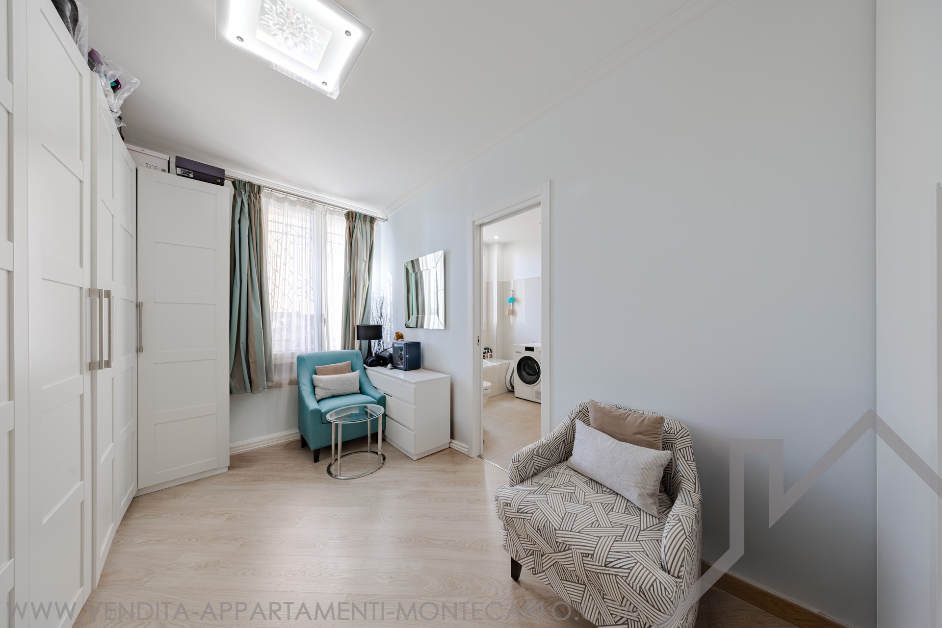 The sleeping area includes four bedrooms, each with its own en-suite bathroom or shower room, including a master suite with bathroom. A dressing room that can be converted into an additional bedroom as well as an additional room ideal for an office complete the layout.