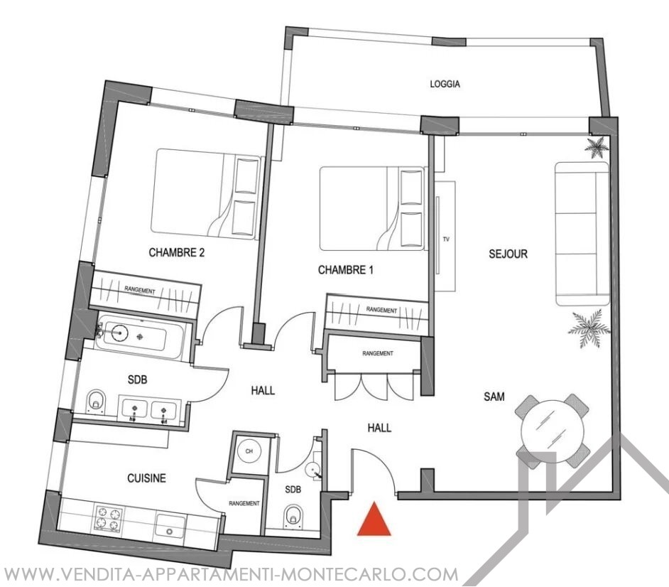 Offering beautiful volumes and excellent development potential, this three-room apartment is a rare opportunity on the market. It consists of an entrance hall, a bright living room opening onto a loggia, two bedrooms, a fitted kitchen, a bathroom, separate toilets and plenty of storage space. All rooms benefit from a window, guaranteeing natural light throughout the day.