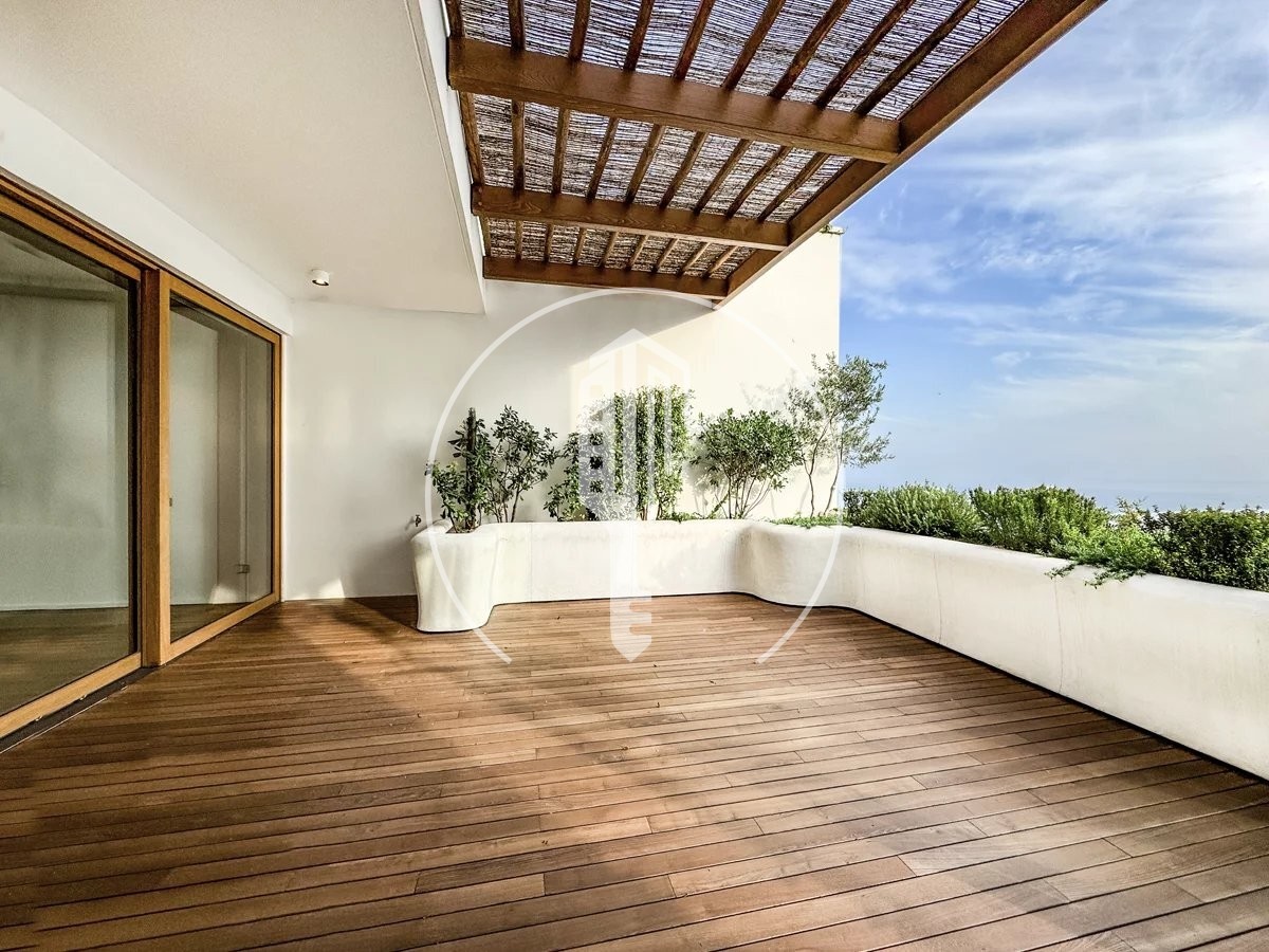 The apartment has a spacious terrace offering stunning panoramic sea views.