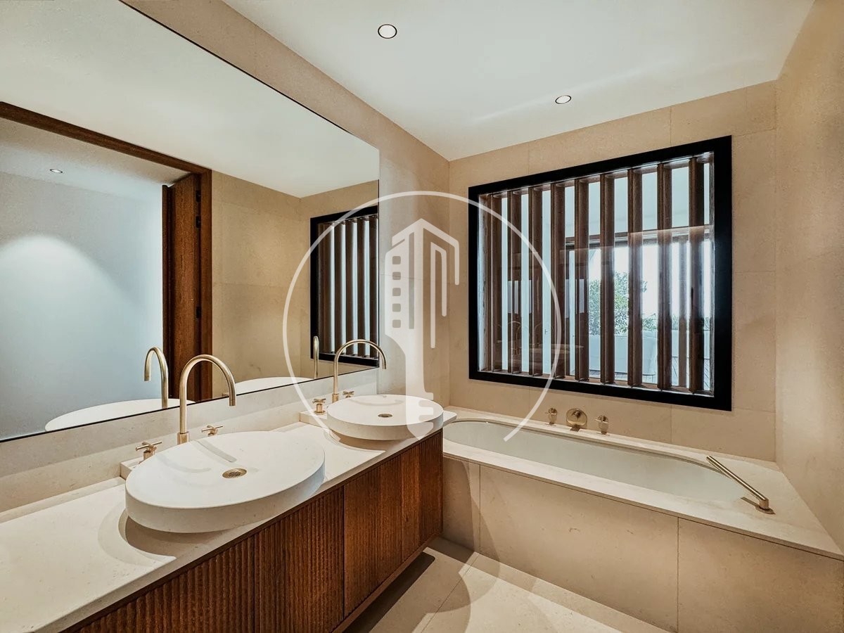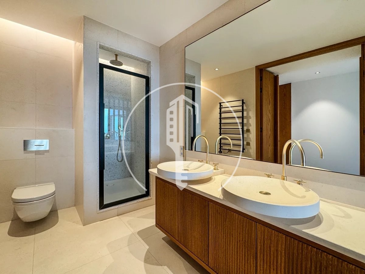 This magnificent two-bedroom apartment boasts a breathtaking sea view. Thanks to its south-west orientation, the apartment benefits from optimum sunlight and impresses with its high-quality design. The apartment features an elegant living room and a fully equipped kitchen. The living room opens onto a spacious terrace, where a large dining table invites convivial evenings. An additional sitting area creates an atmosphere of calm and relaxation for you and your guests. The master bedroom impresses with its size, natural light and walk-in wardrobe that offers plenty of storage space. The en-suite bathroom with underfloor heating features stone tiles, a custom double sink, bathtub and shower. A second bedroom with shower room also offers quality materials and modern design.
