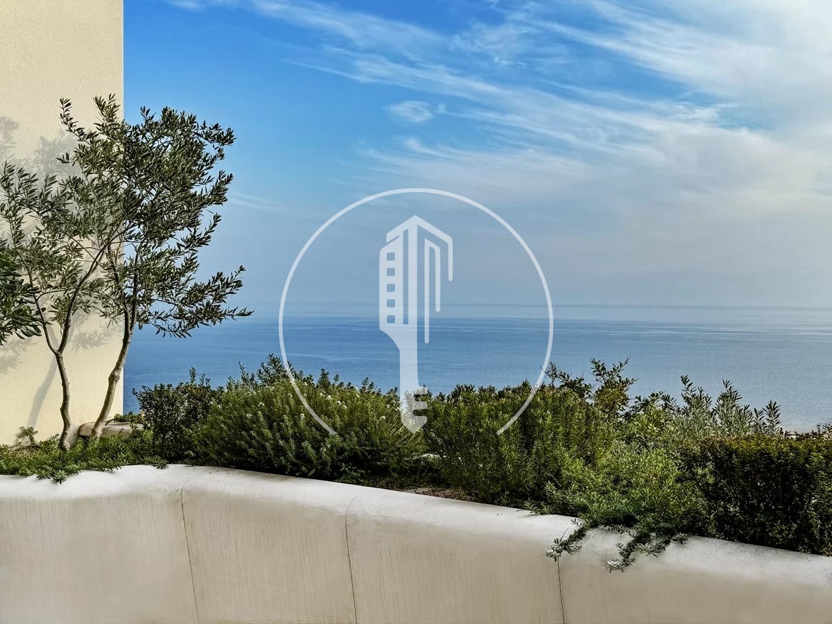 The apartment has a spacious terrace offering stunning panoramic sea views.
