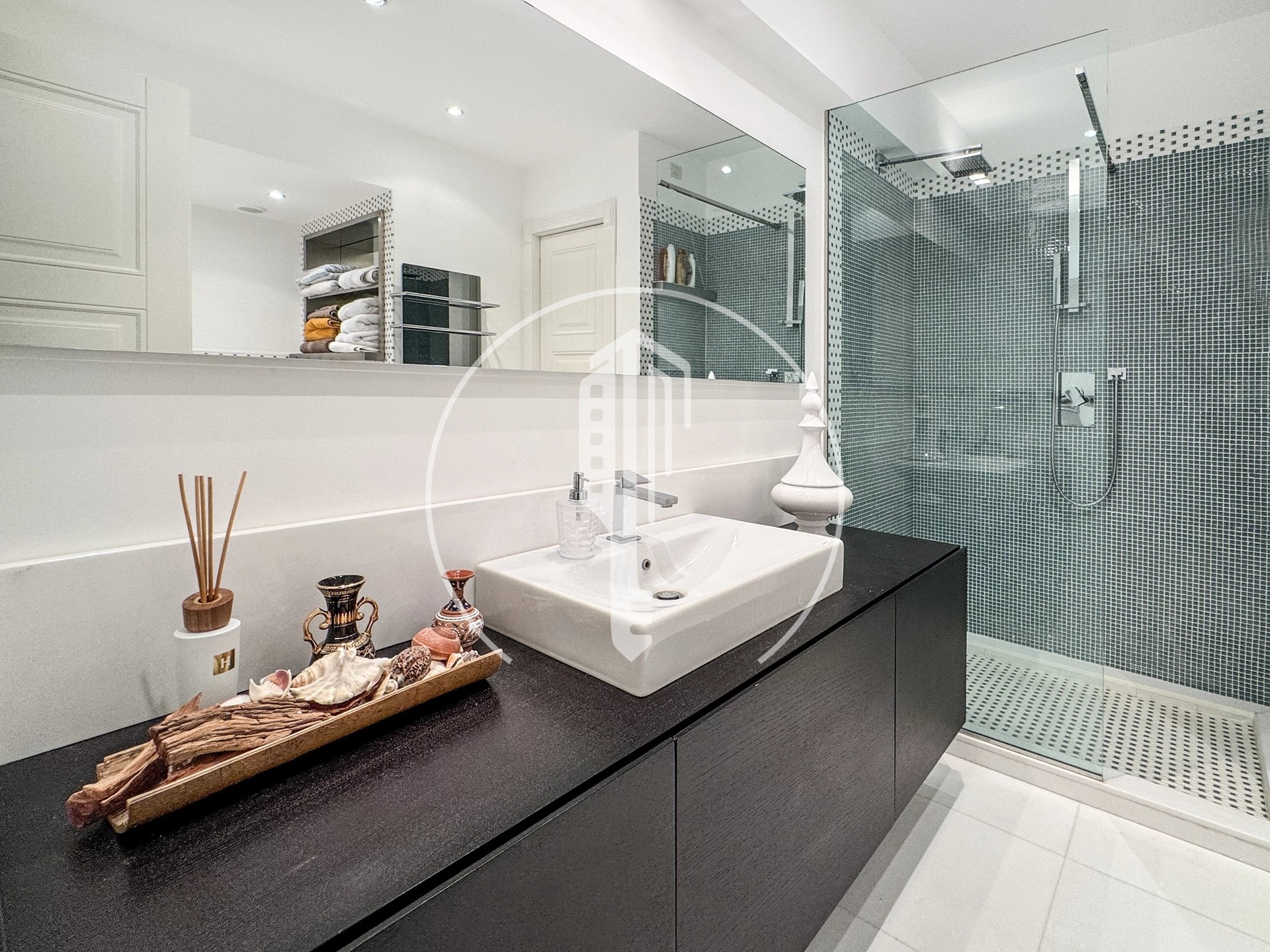 The apartment benefits from a double south/east and south/west exposure, and comprises an entrance hall, a large living/dining room, an equipped kitchen, a laundry room, an office, three bedrooms with their own bathrooms.